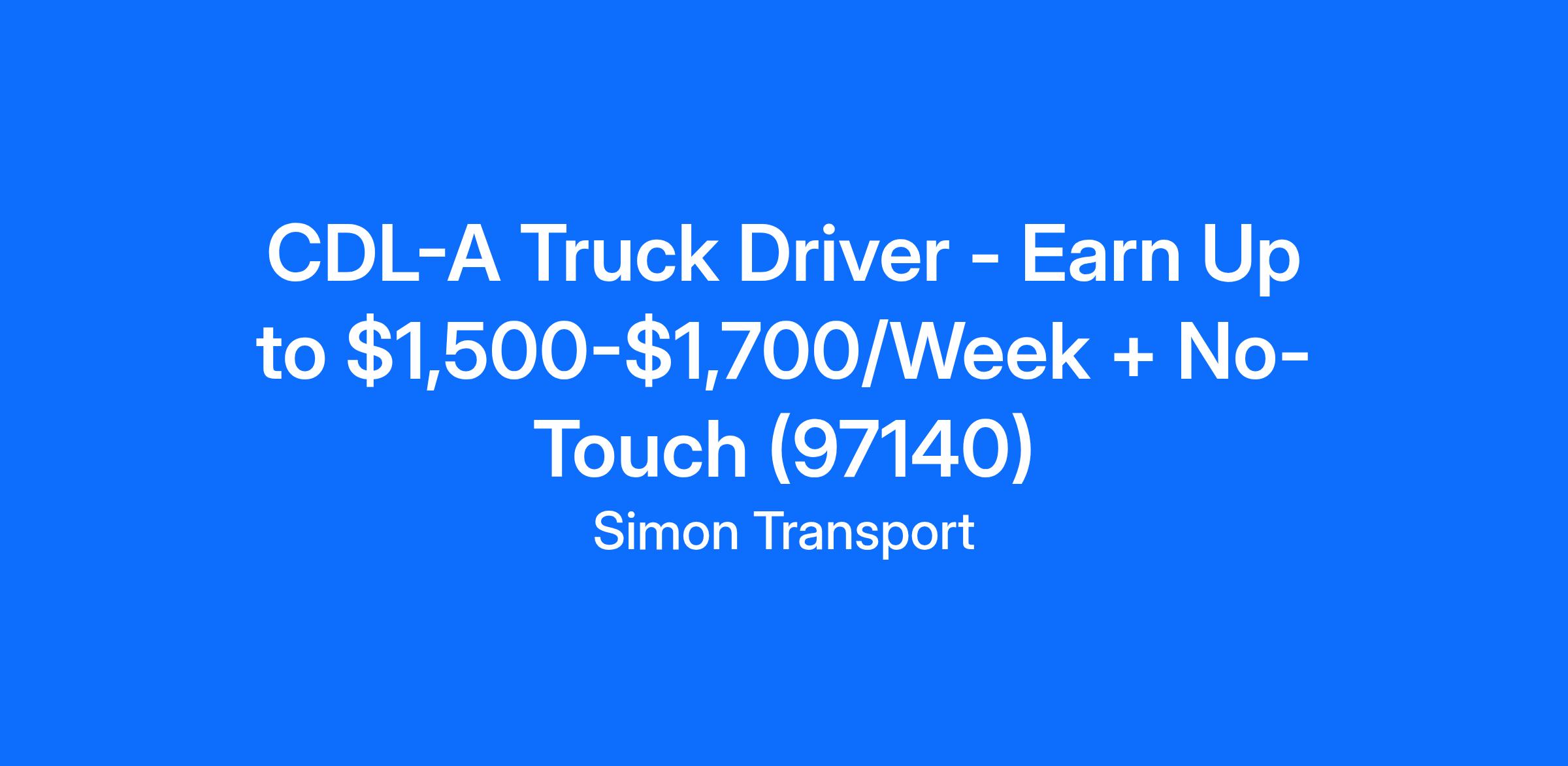 CDL-A Truck Driver - Earn Up to $1,500-$1,700/Week + No-Touch (97140)