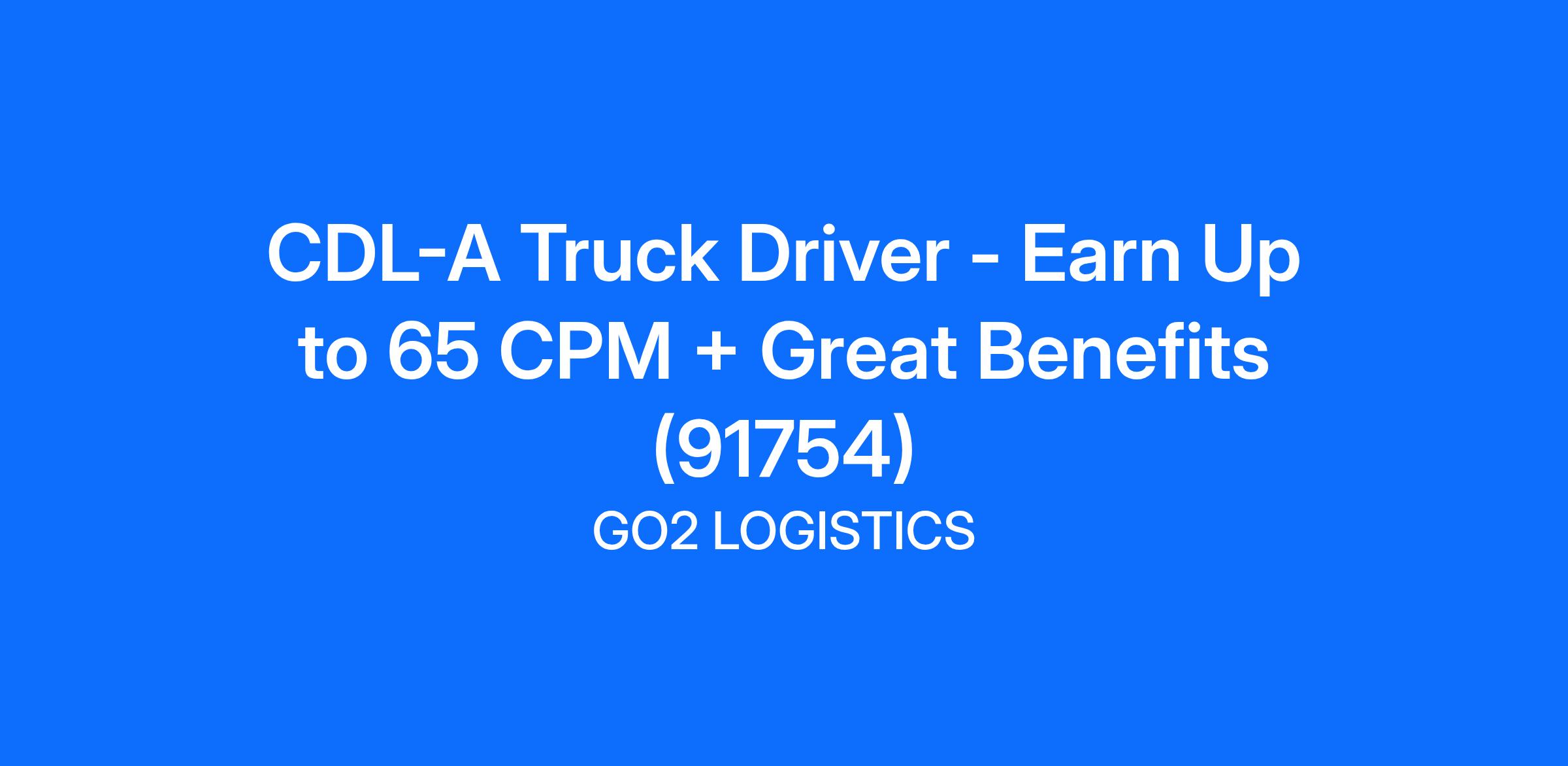 CDL-A Truck Driver - Earn Up to 65 CPM + Great Benefits (91754)