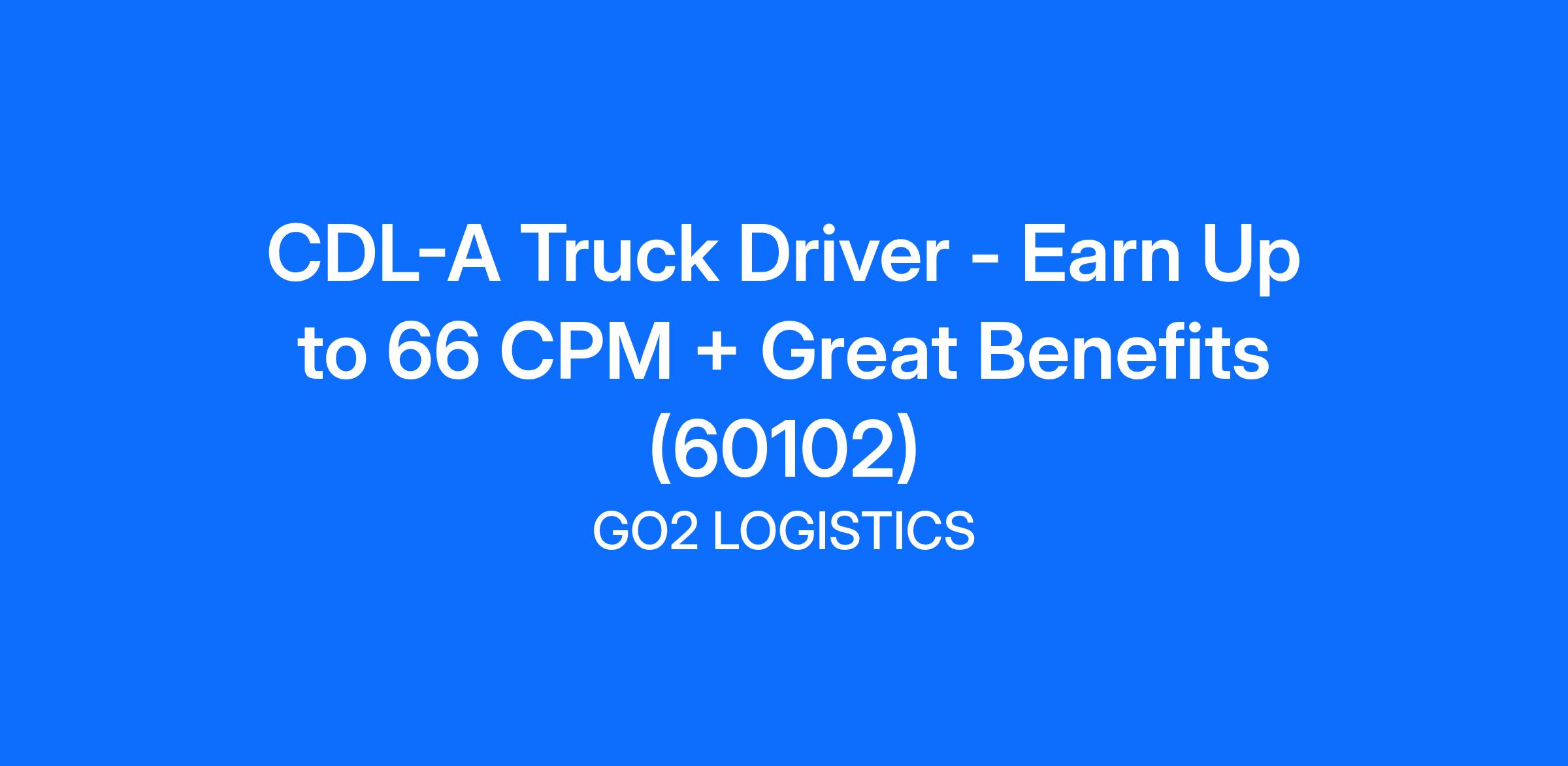 CDL-A Truck Driver - Earn Up to 66 CPM + Great Benefits (60102)