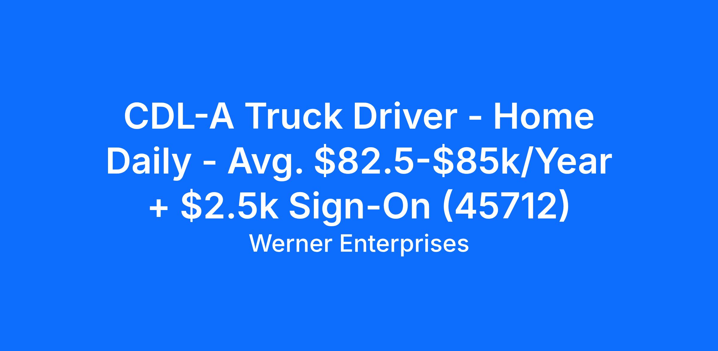 CDL-A Truck Driver - Home Daily - Avg. $82.5-$85k/Year + $2.5k Sign-On (45712)