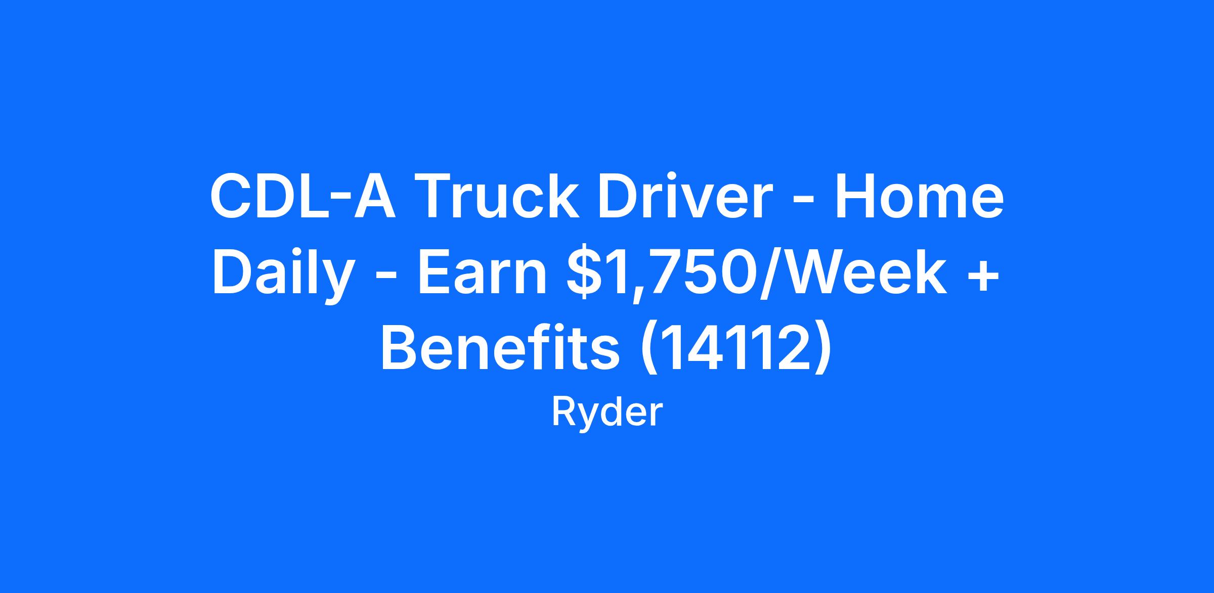 CDL-A Truck Driver - Home Daily - Earn $1,750/Week + Benefits (14112)