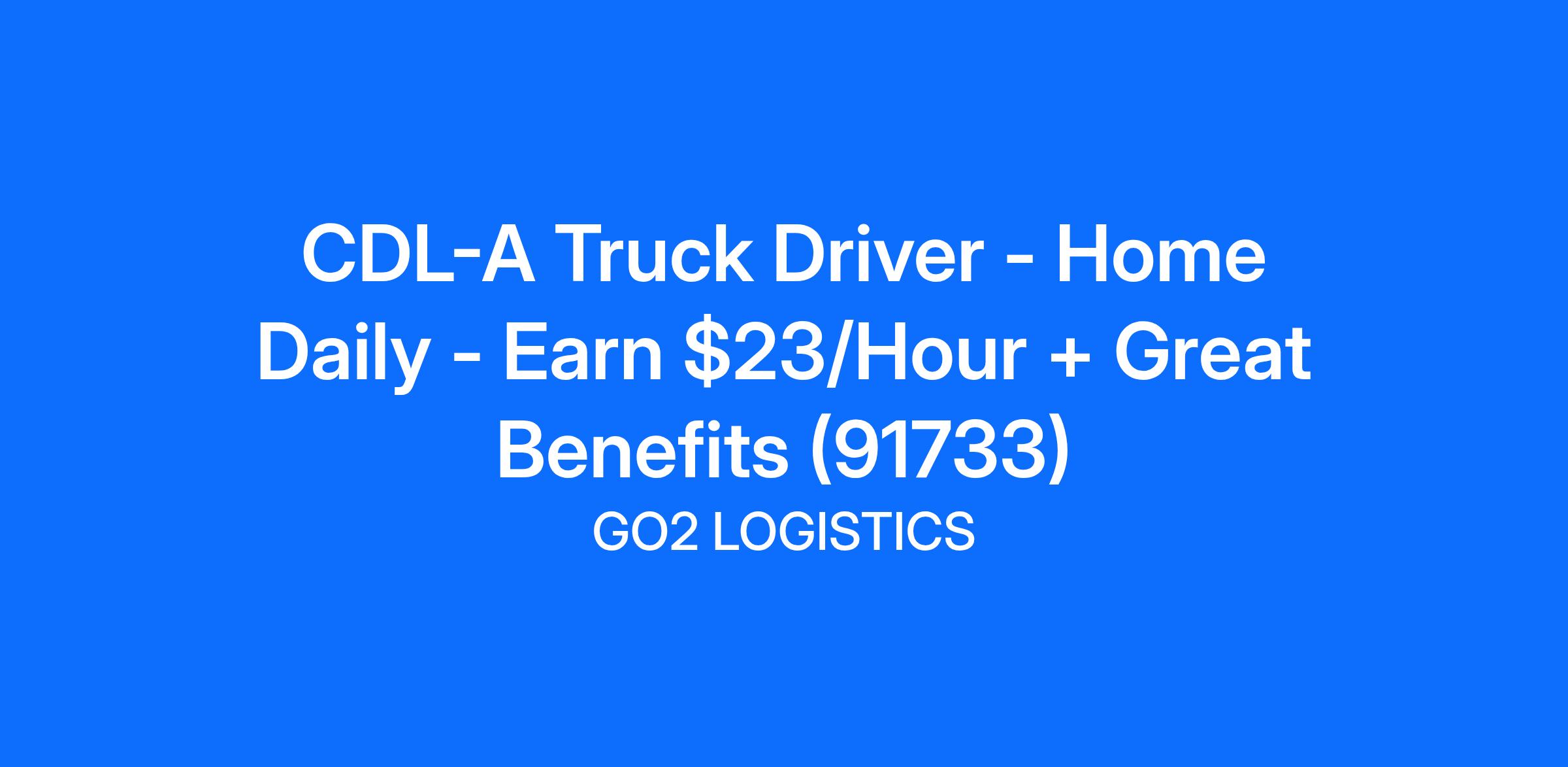 CDL-A Truck Driver - Home Daily - Earn $23/Hour + Great Benefits (91733)