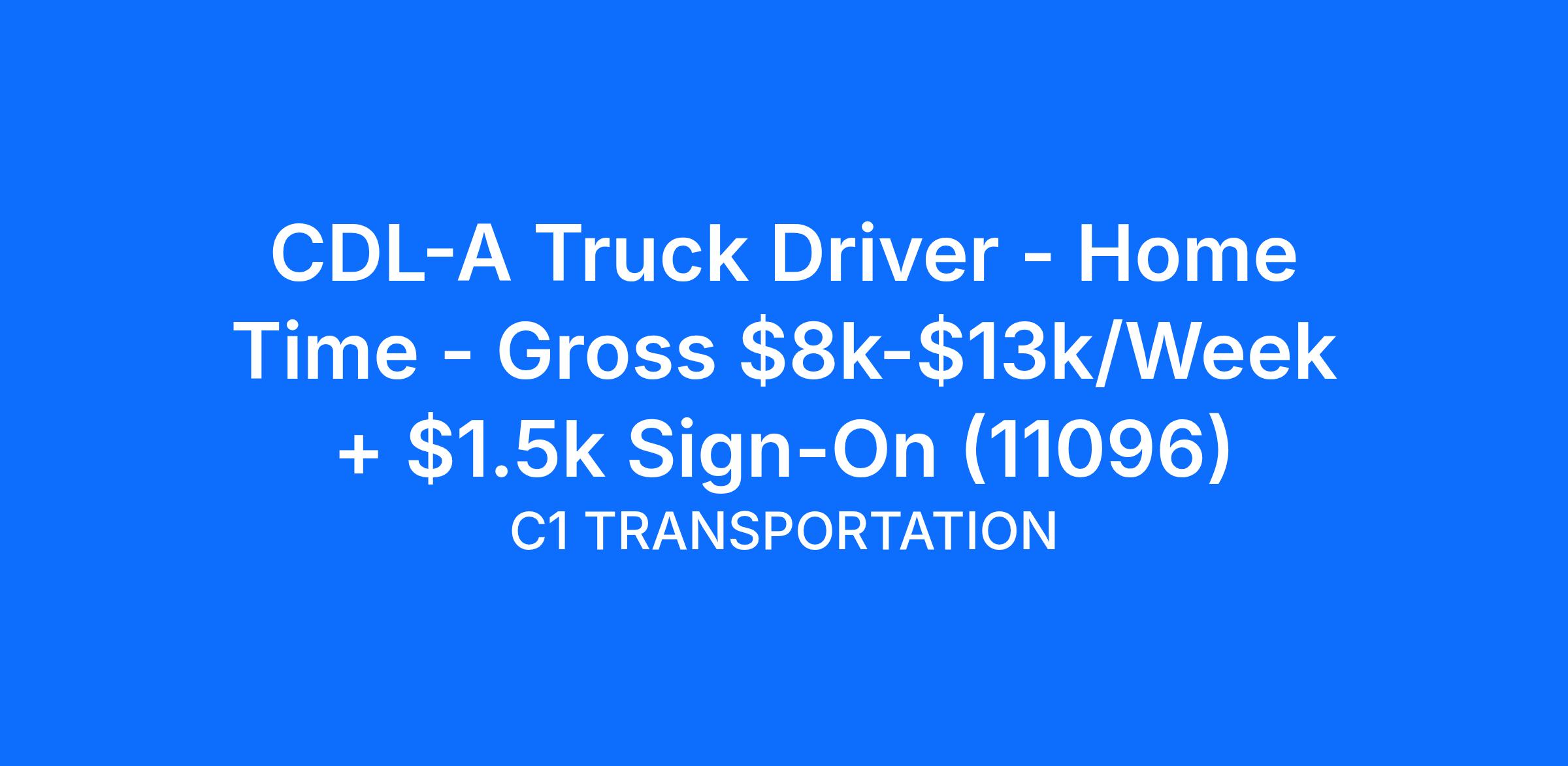 CDL-A Truck Driver - Home Time - Gross $8k-$13k/Week + $1.5k Sign-On (11096)