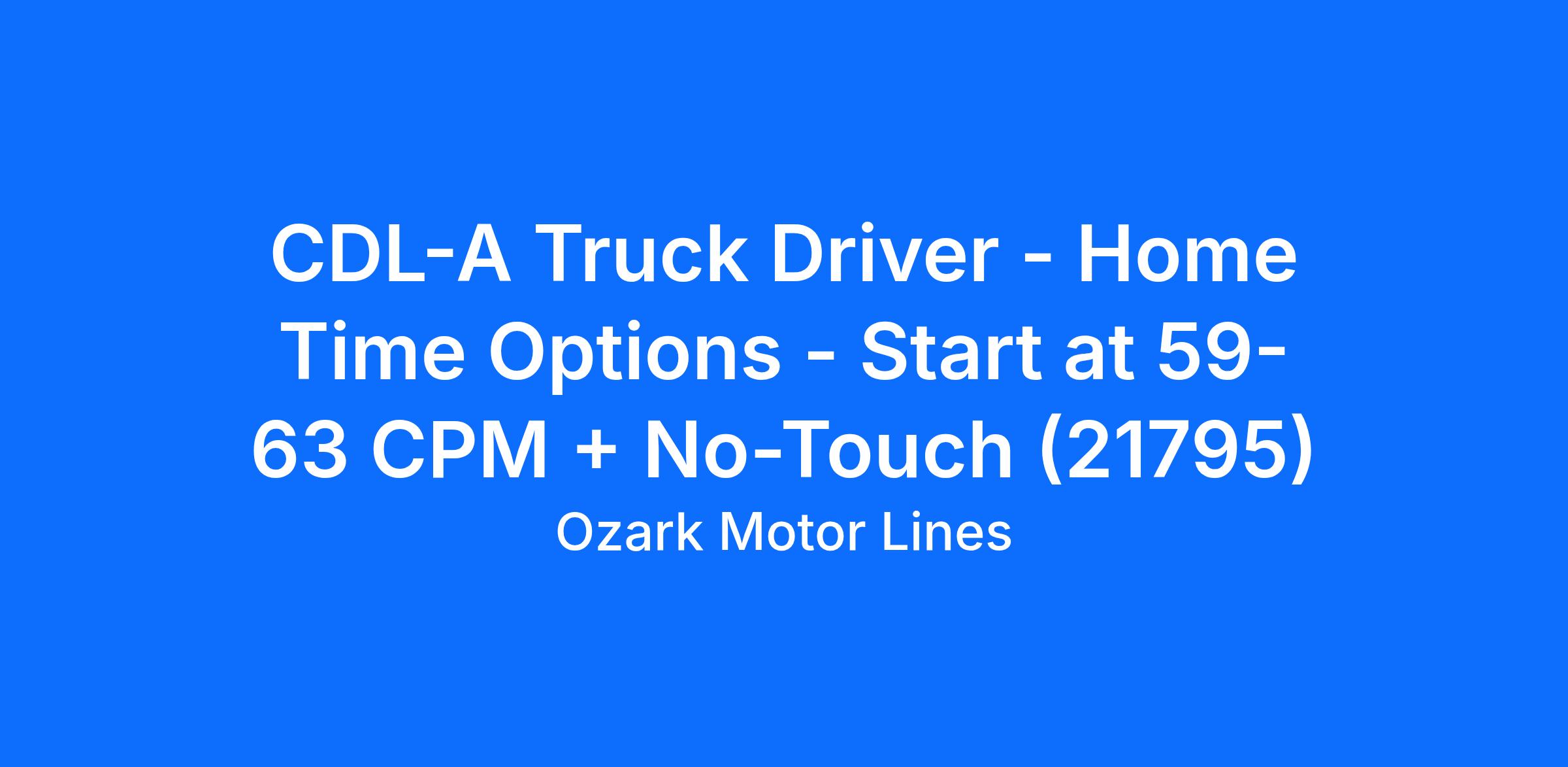 CDL-A Truck Driver - Home Time Options - Start at 59-63 CPM + No-Touch (21795)