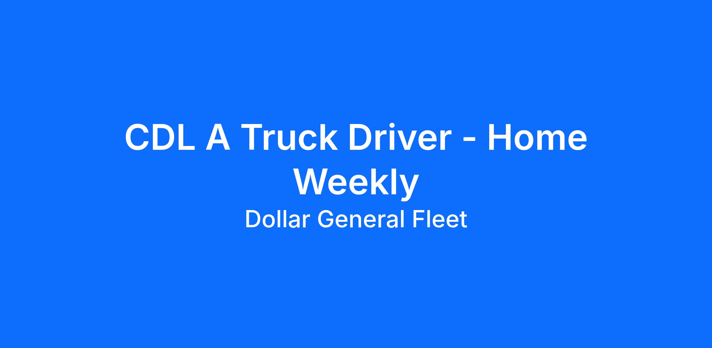 Dollar General is currently hiring Class A CDL Truck Drivers for regional home weekly routes. We take care of our DG family so that you can take care of yours. As a driver for Dollar General's private fleet, you will be connecting our distribution centers with existingDollar General stores and new stores opening across the country. Apply today, or call us at (629) ###-#### to speak with a recruiter.