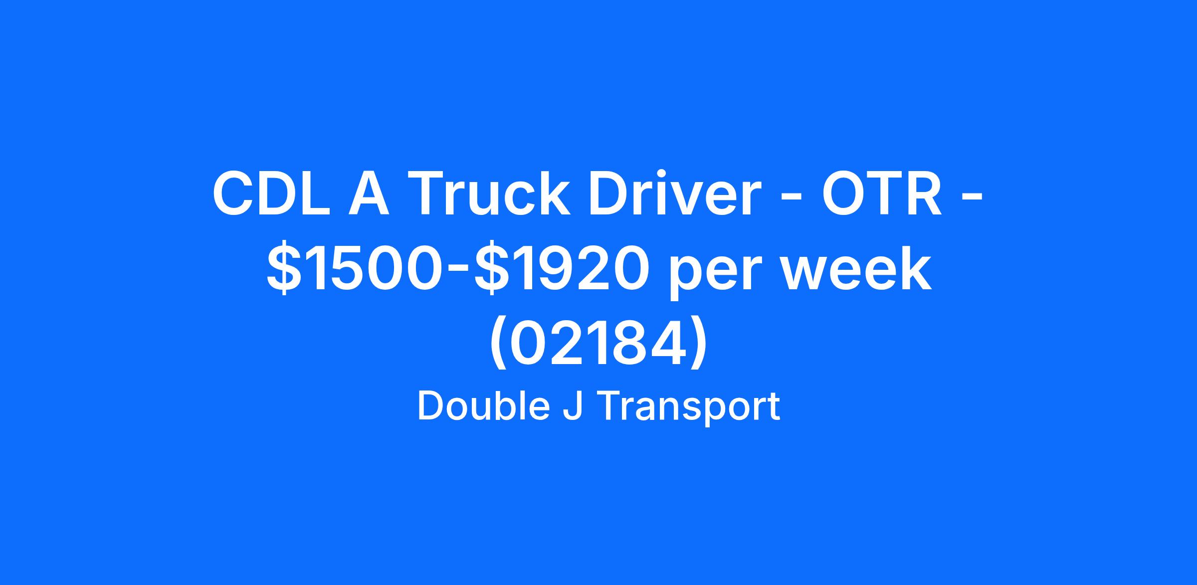 CDL A Truck Driver - OTR - $1500-$1920 per week (02184)