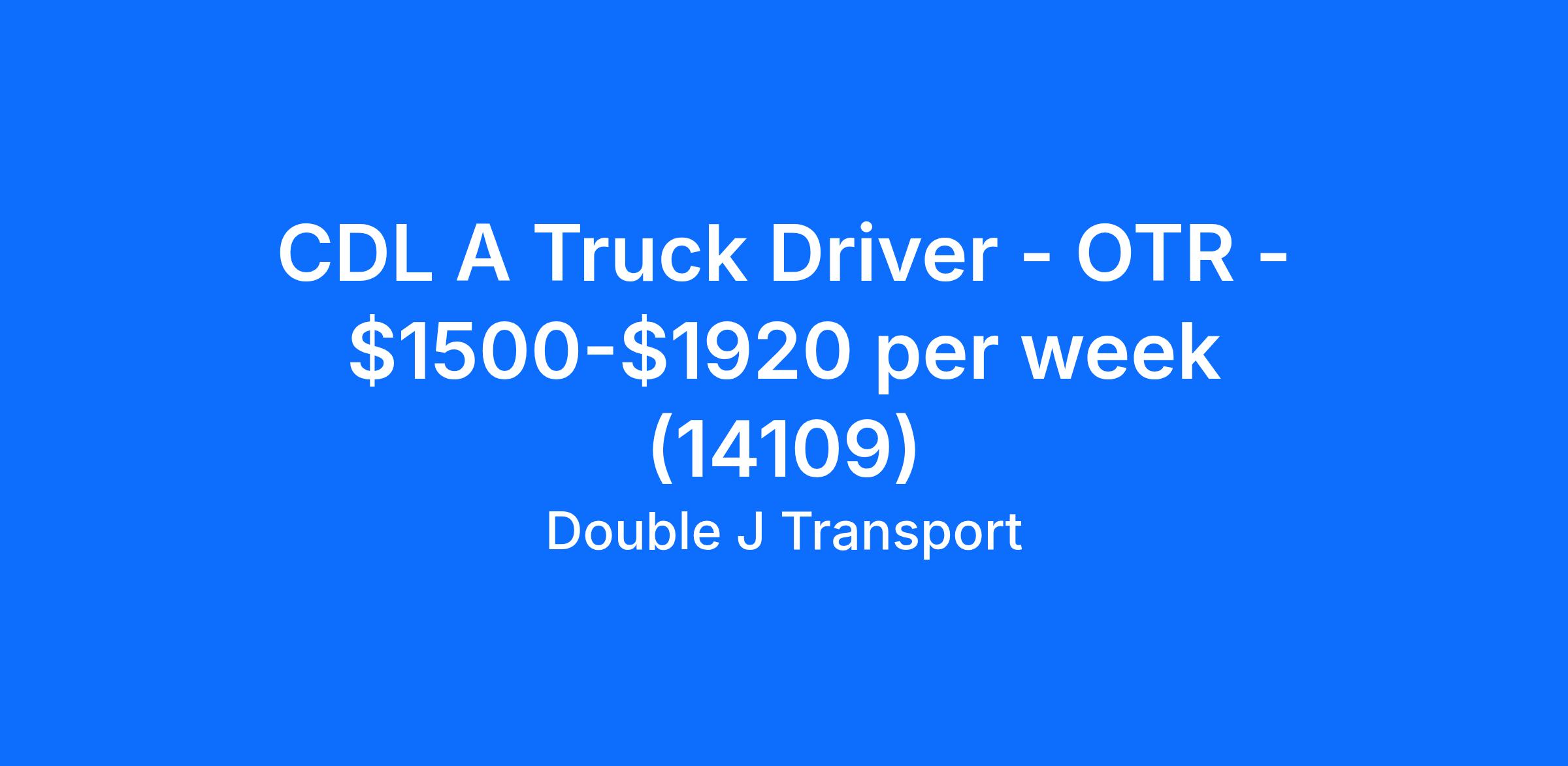 CDL A Truck Driver - OTR - $1500-$1920 per week (14109)
