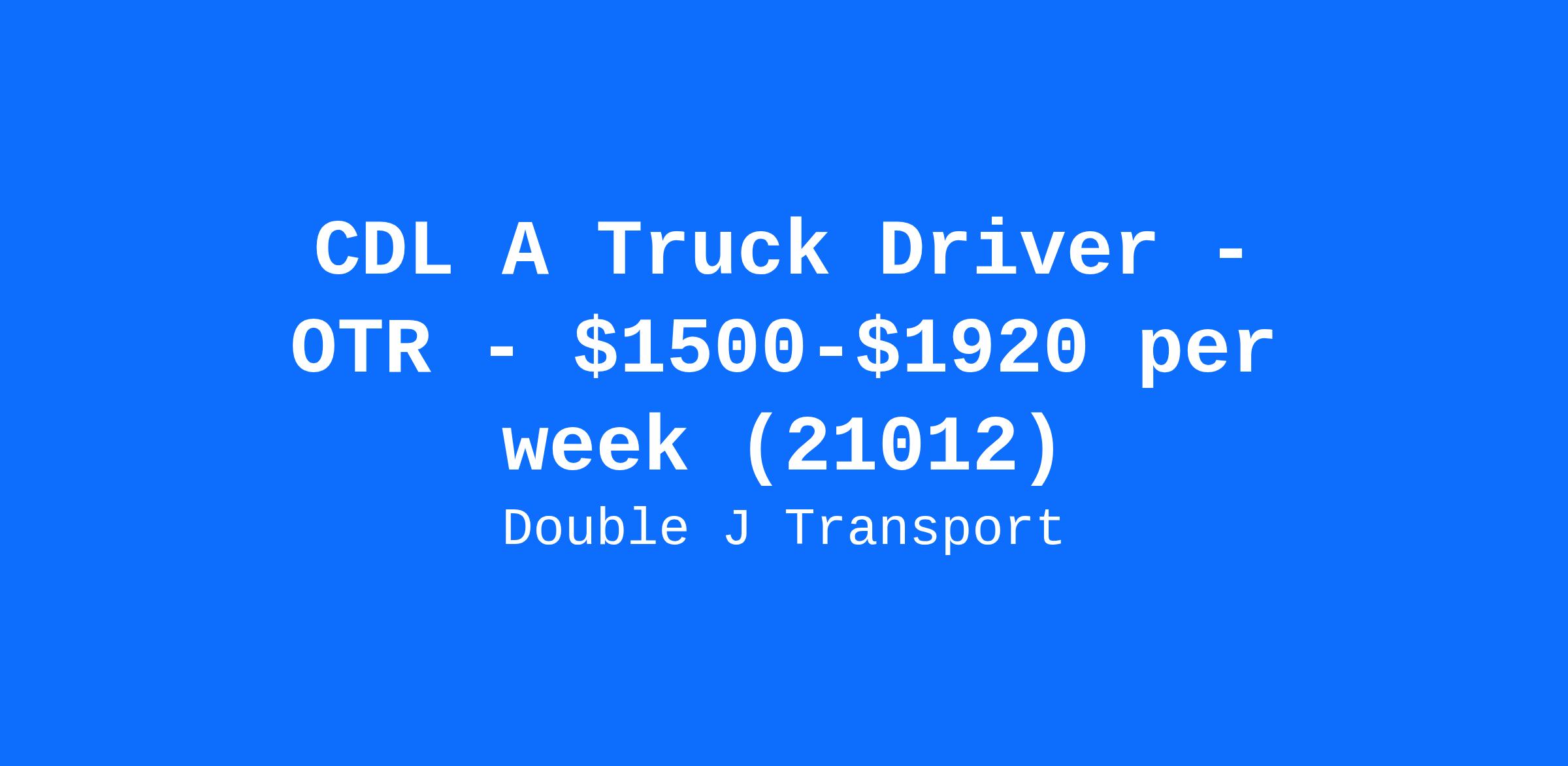 CDL A Truck Driver - OTR - $1500-$1920 per week (21012)