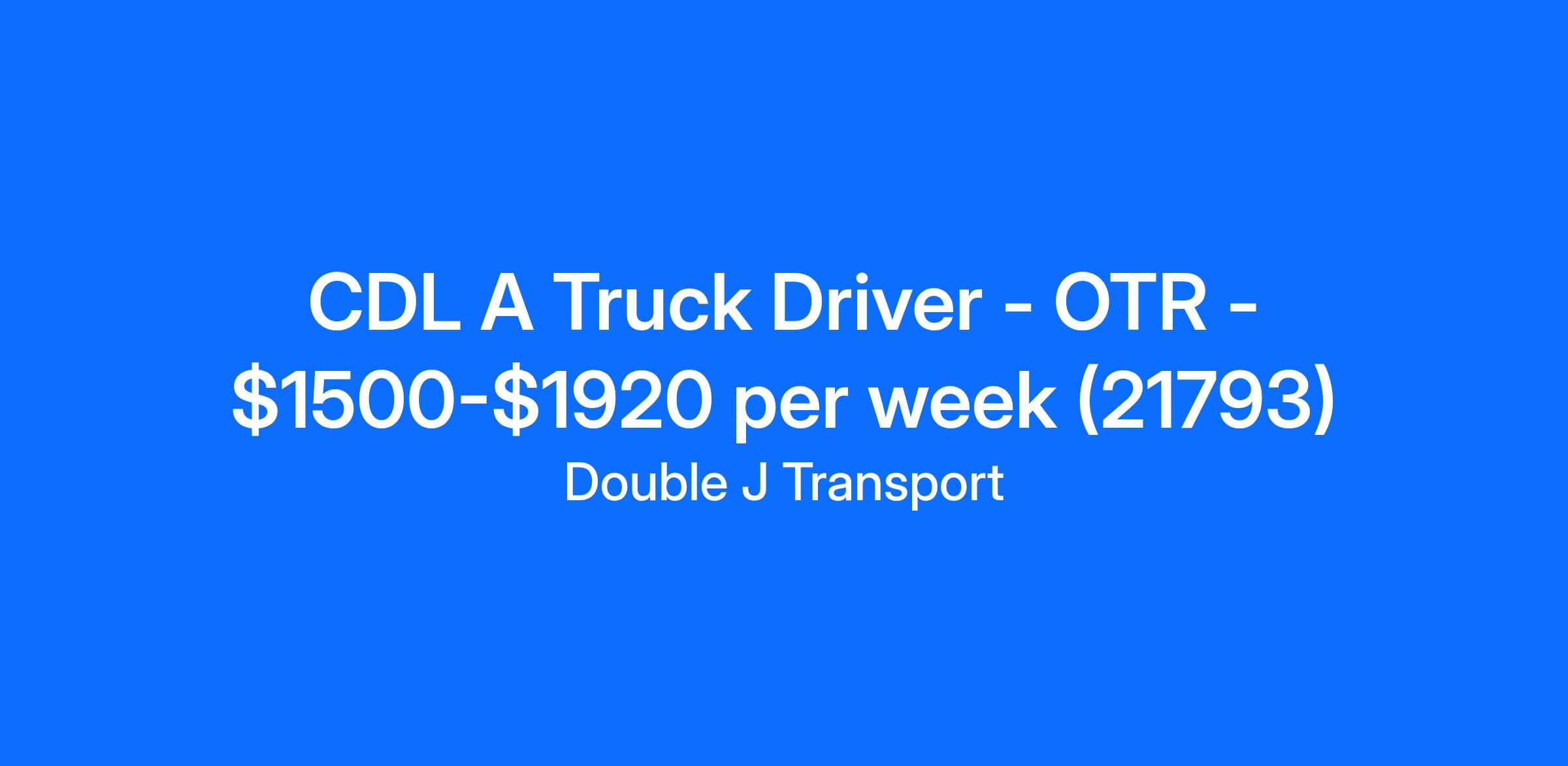 CDL A Truck Driver - OTR - $1500-$1920 per week (21793)