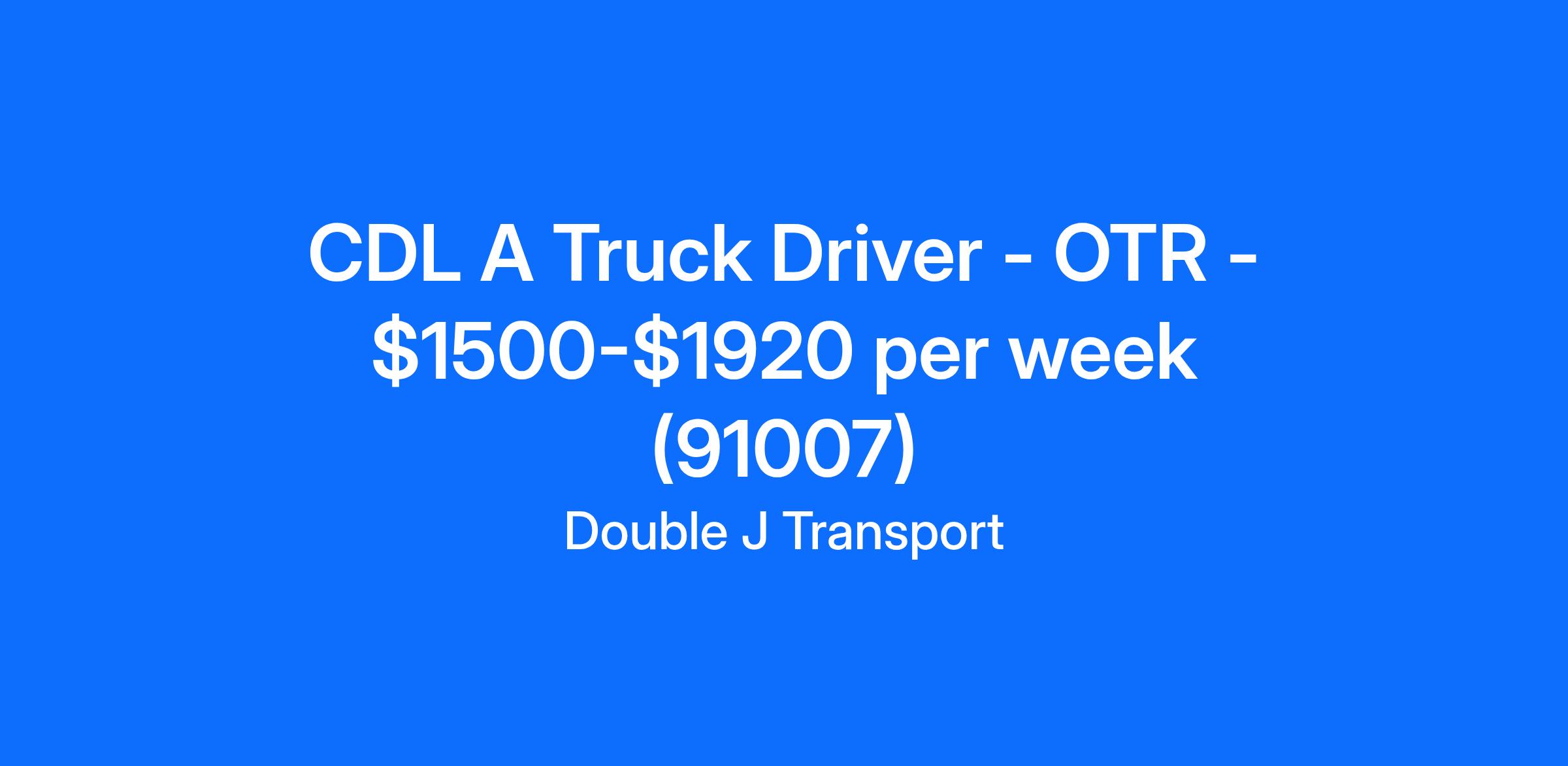 CDL A Truck Driver - OTR - $1500-$1920 per week (91007)