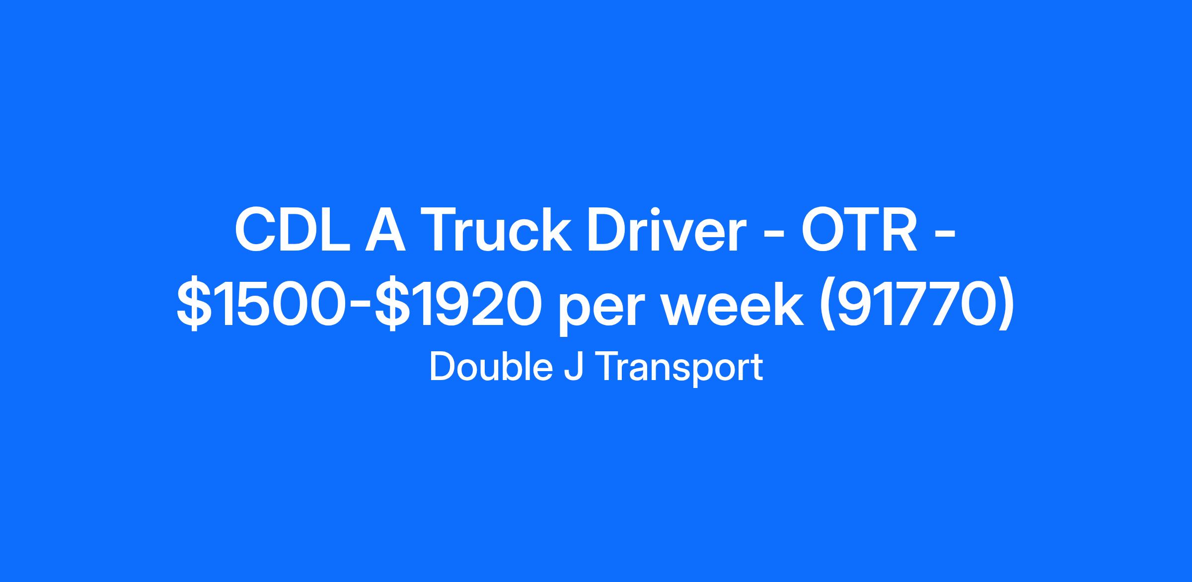 CDL A Truck Driver - OTR - $1500-$1920 per week (91770)
