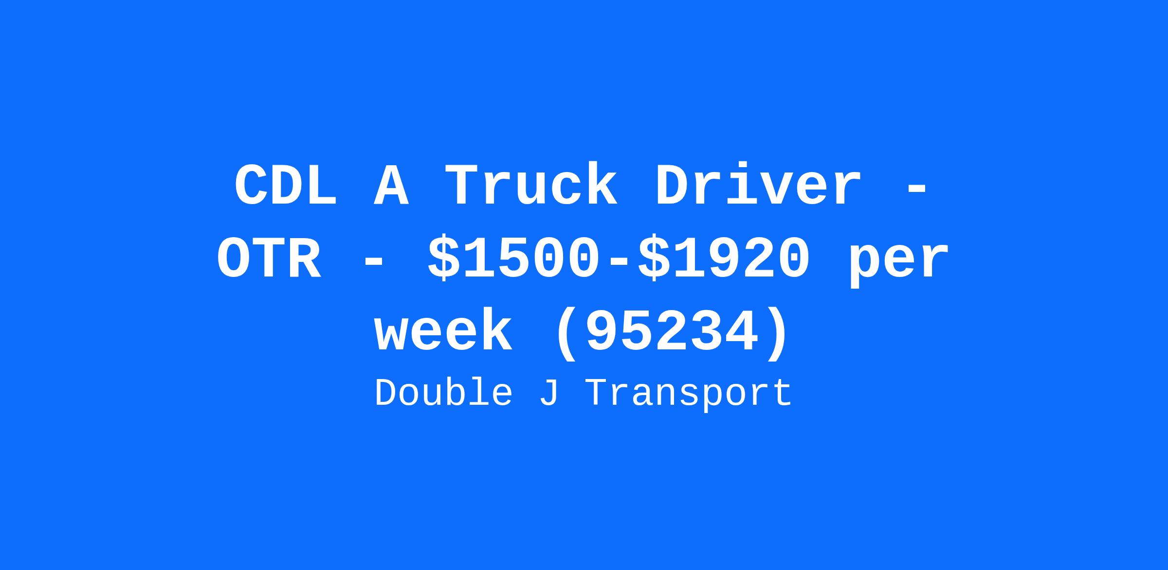 CDL A Truck Driver - OTR - $1500-$1920 per week (95234)