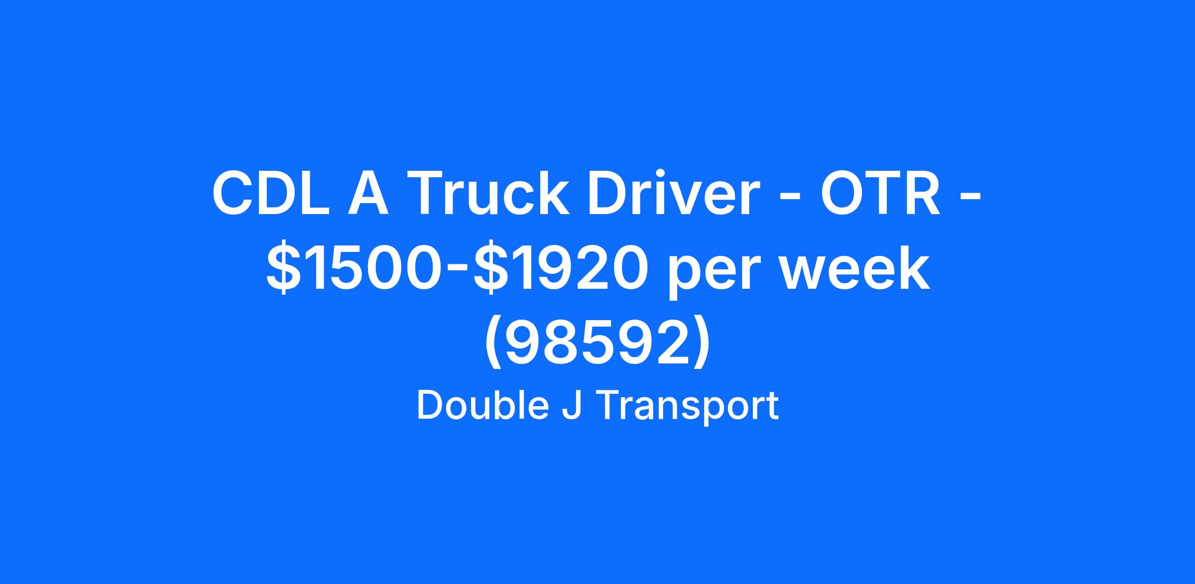 CDL A Truck Driver - OTR - $1500-$1920 per week (98592)