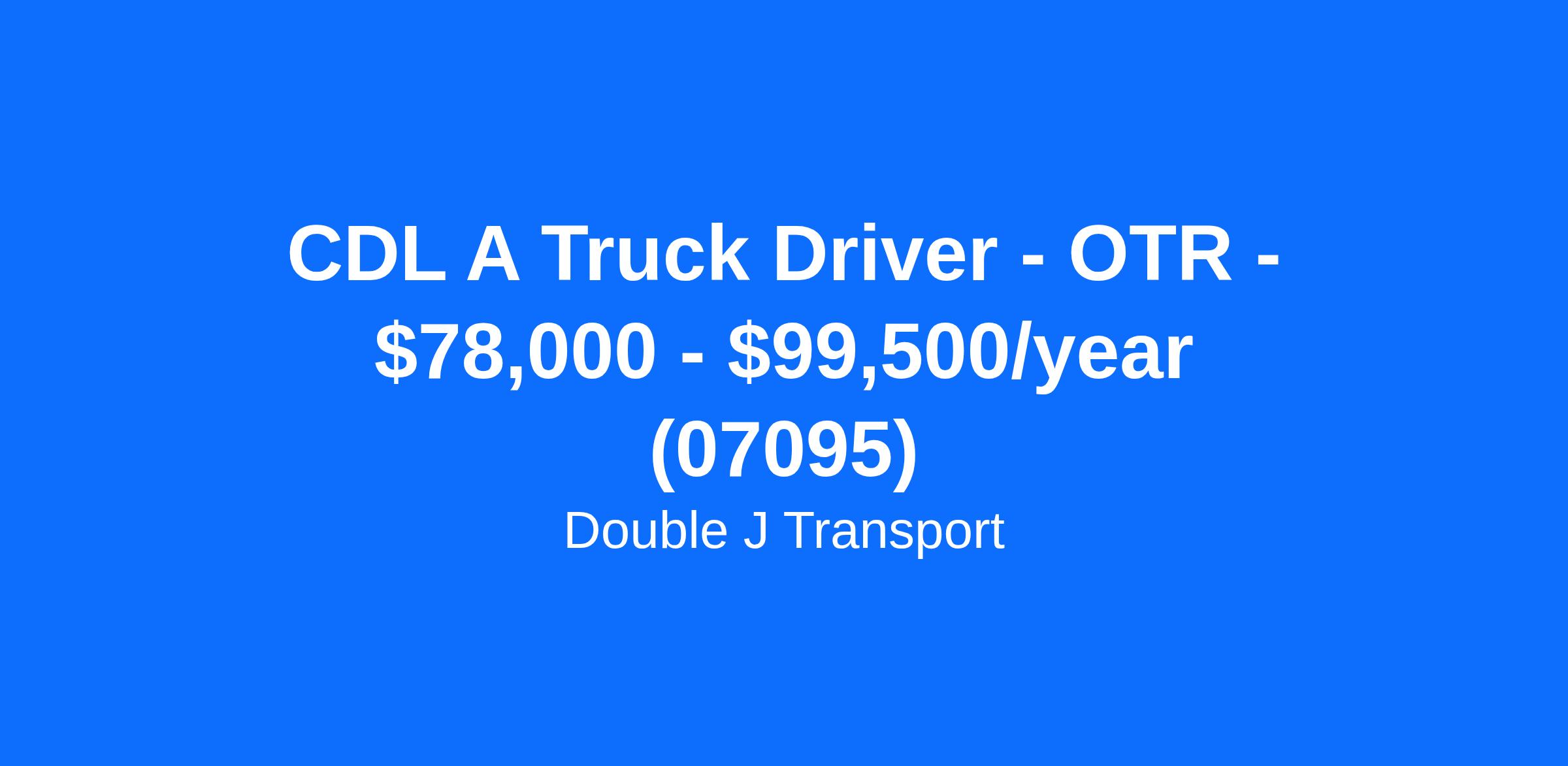 CDL A Truck Driver - OTR - $78,000 - $99,500/year (07095)