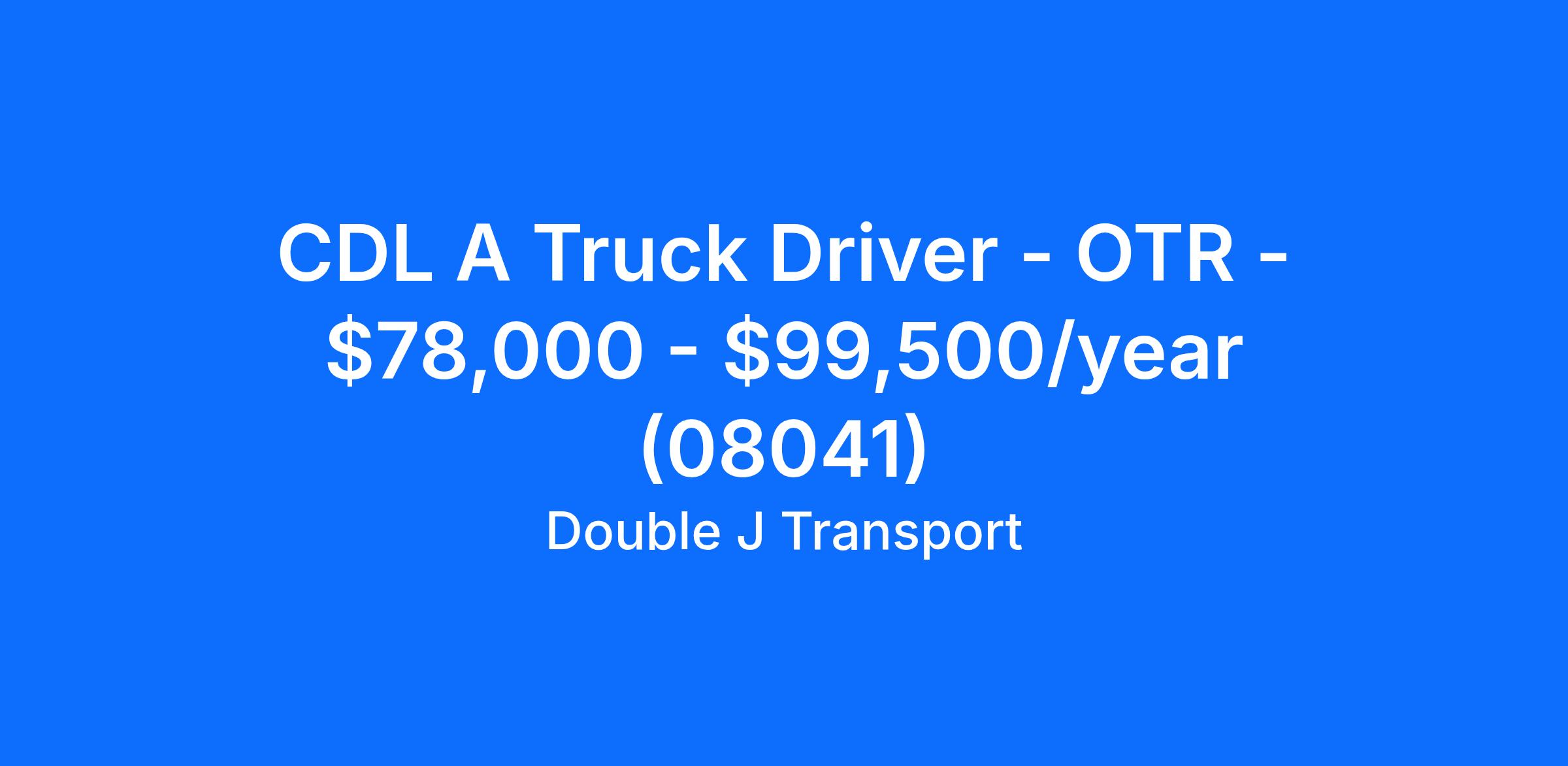 CDL A Truck Driver - OTR - $78,000 - $99,500/year (08041)