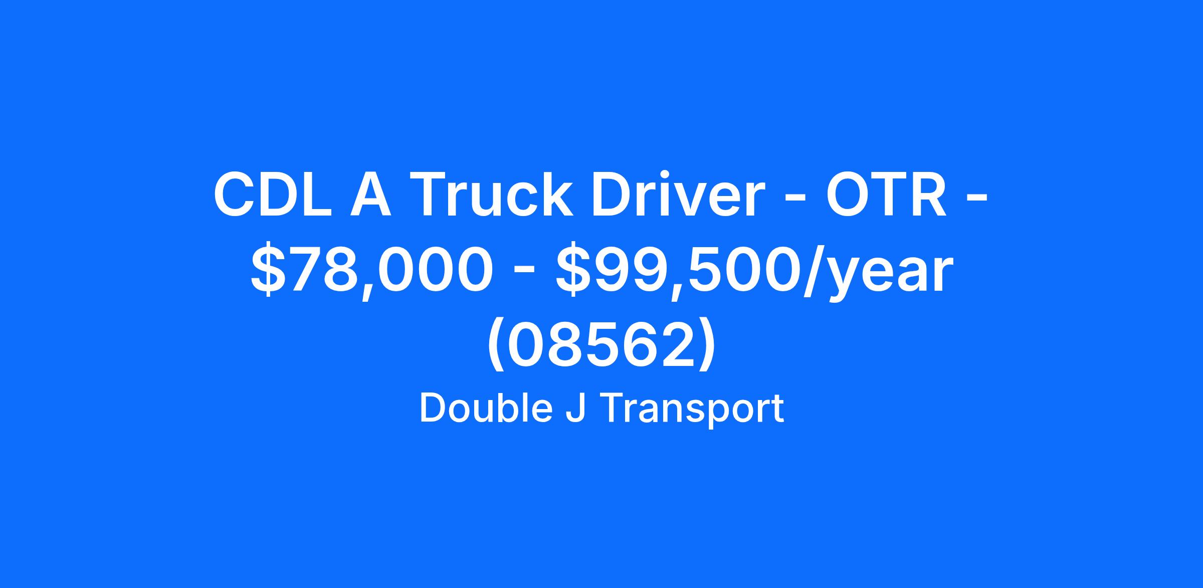 CDL A Truck Driver - OTR - $78,000 - $99,500/year (08562)
