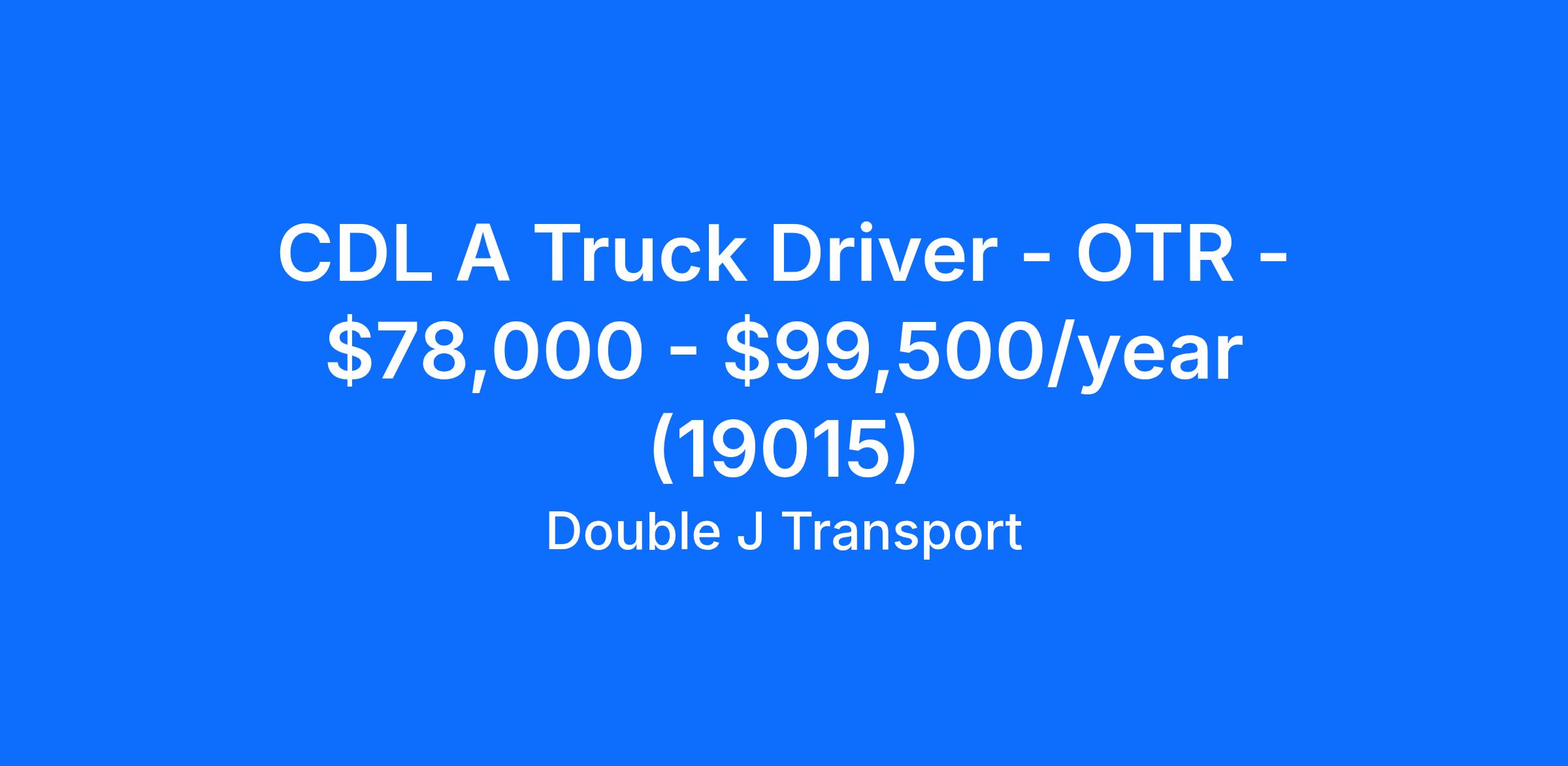 CDL A Truck Driver - OTR - $78,000 - $99,500/year (19015)