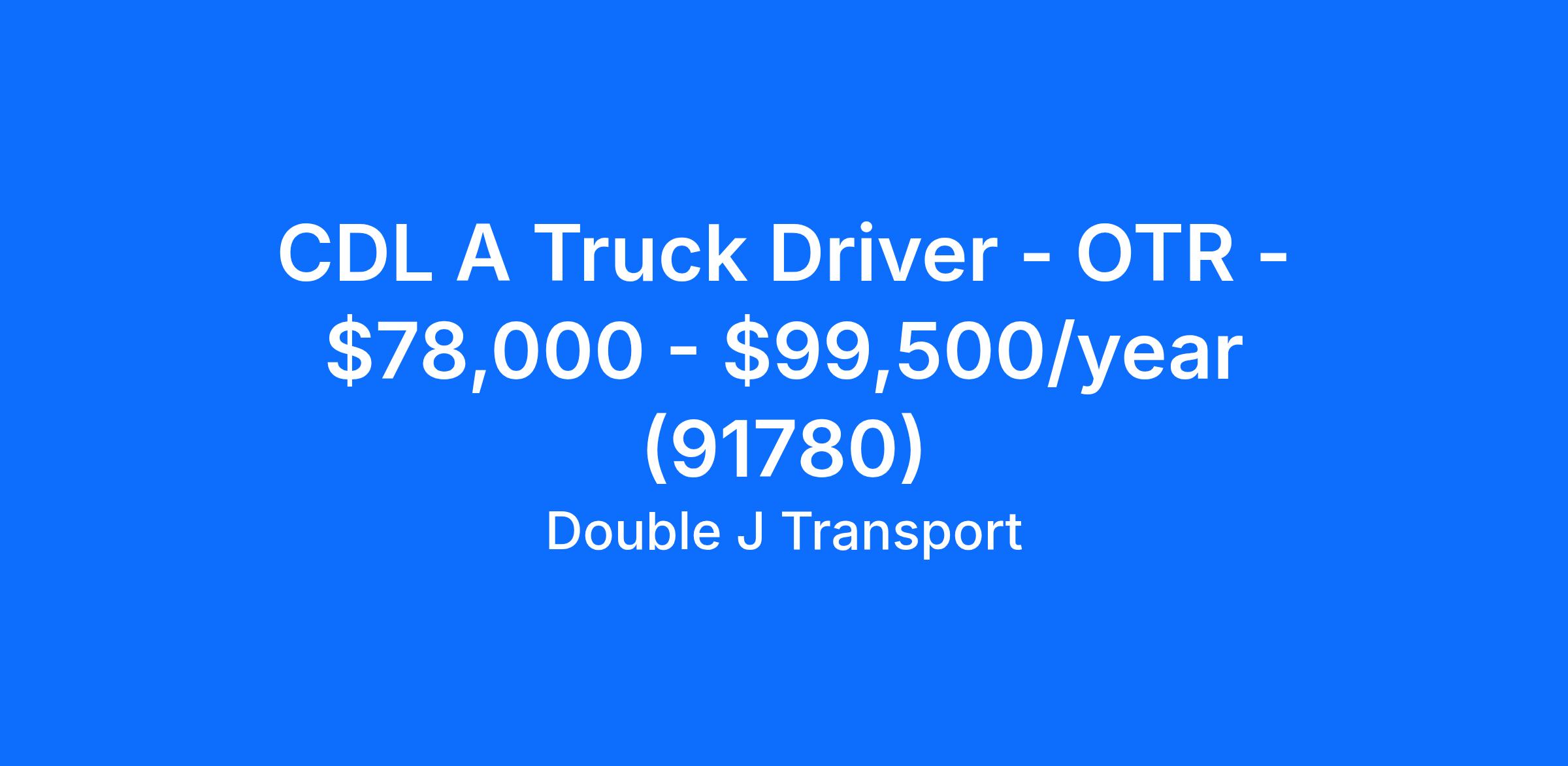CDL A Truck Driver - OTR - $78,000 - $99,500/year (91780)