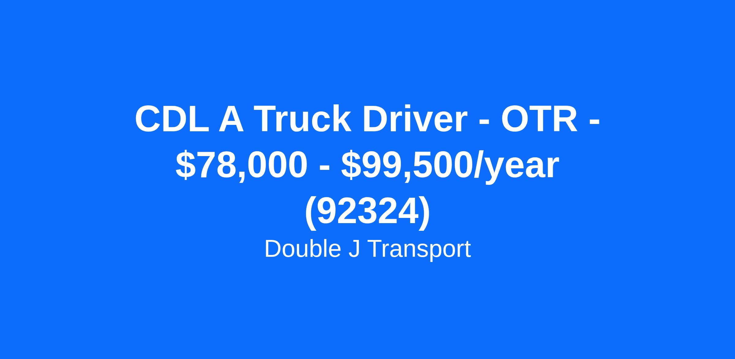 CDL A Truck Driver - OTR - $78,000 - $99,500/year (92324)