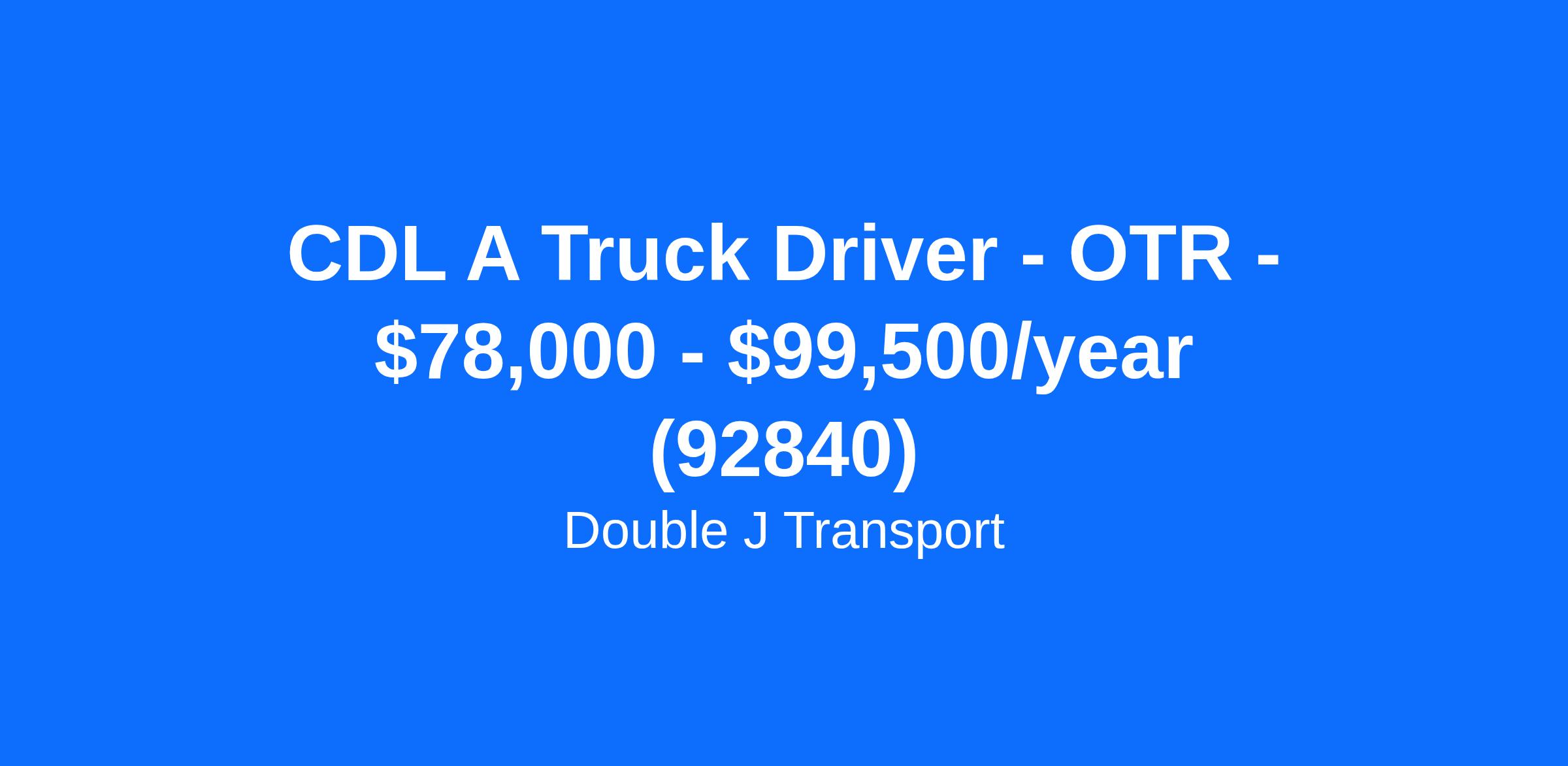 CDL A Truck Driver - OTR - $78,000 - $99,500/year (92840)