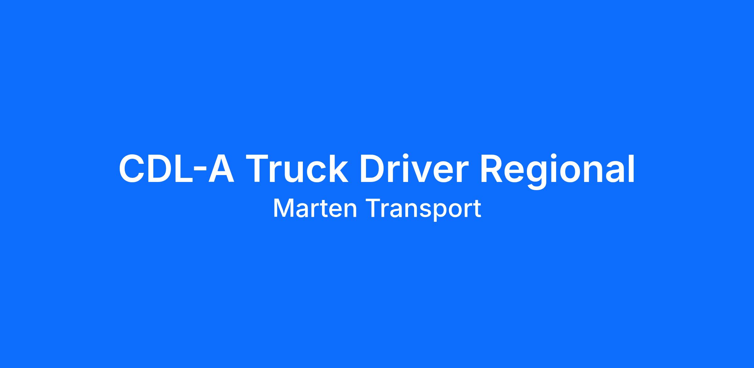 CDL-A Truck Drivers- Join a 2-Time TCA Elite FleetAre you looking for a CDL-A truck driving job with reliable miles and consistent home time? Marten Transport, a back-to-back TCA Elite Fleet honoree (2025 and 2026), offers professional drivers the opportunity to run with a stable, financially independent carrier that puts drivers first.From dependable schedules to competitive pay and modern equipment, Marten continues to set the standard for what drivers should expect from a carrier.Advantages and earnings include: