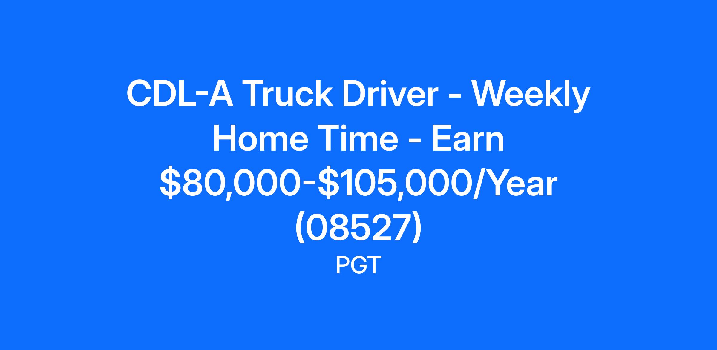 CDL-A Truck Driver - Weekly Home Time - Earn $80,000-$105,000/Year (08527)