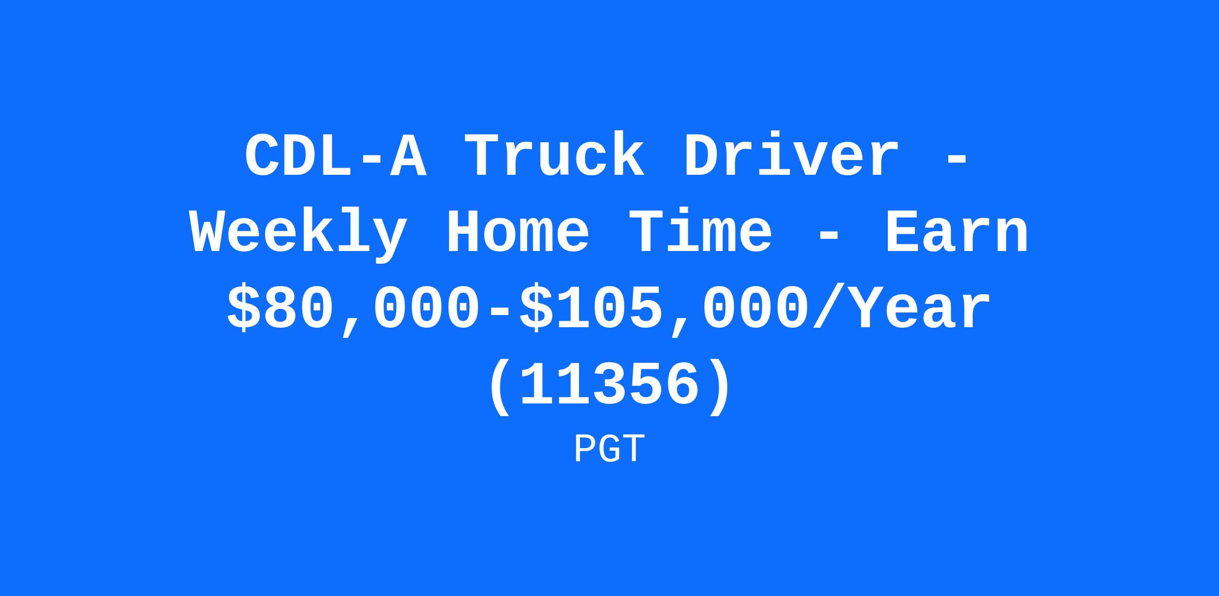CDL-A Truck Driver - Weekly Home Time - Earn $80,000-$105,000/Year (11356)