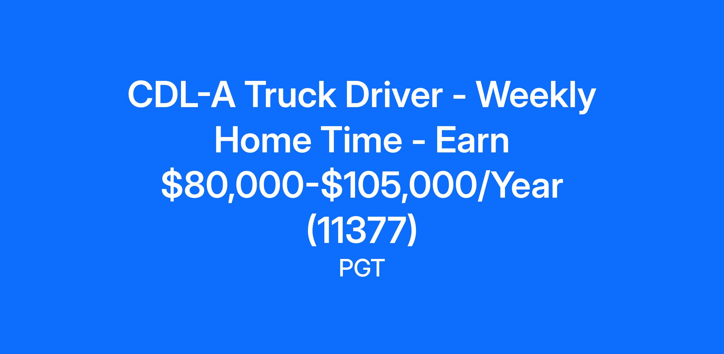 CDL-A Truck Driver - Weekly Home Time - Earn $80,000-$105,000/Year (11377)