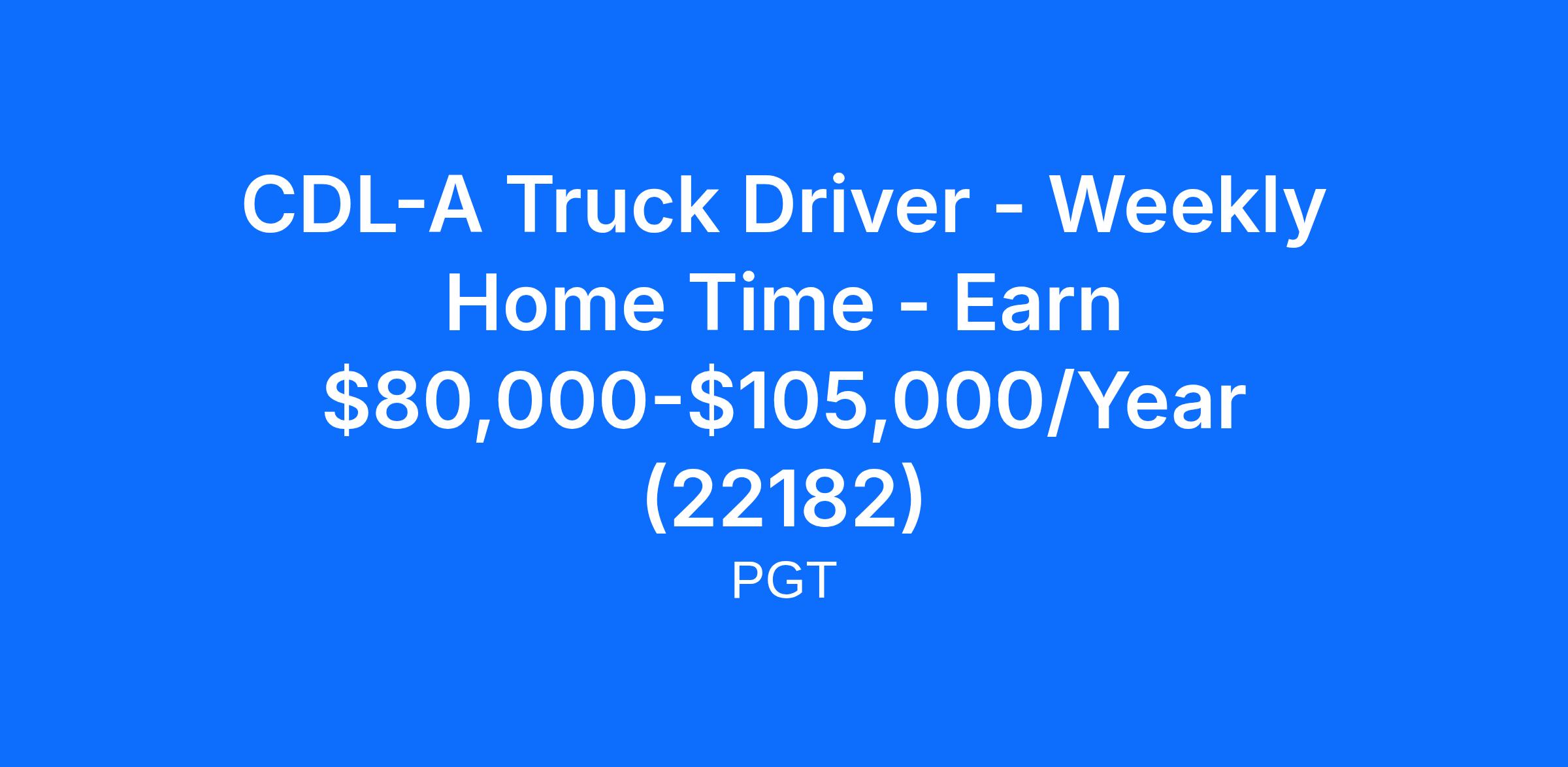 CDL-A Truck Driver - Weekly Home Time - Earn $80,000-$105,000/Year (22182)