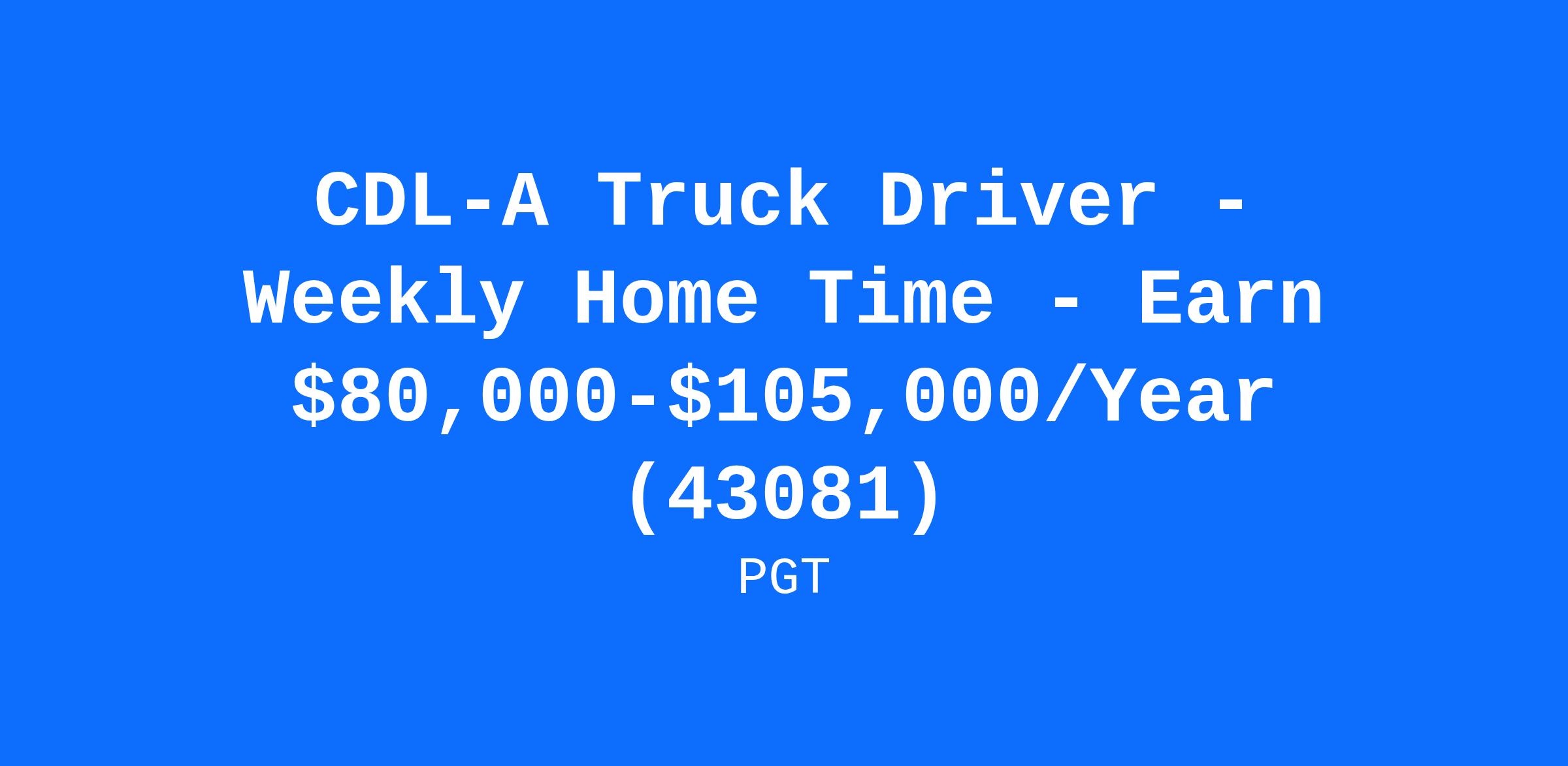 CDL-A Truck Driver - Weekly Home Time - Earn $80,000-$105,000/Year (43081)