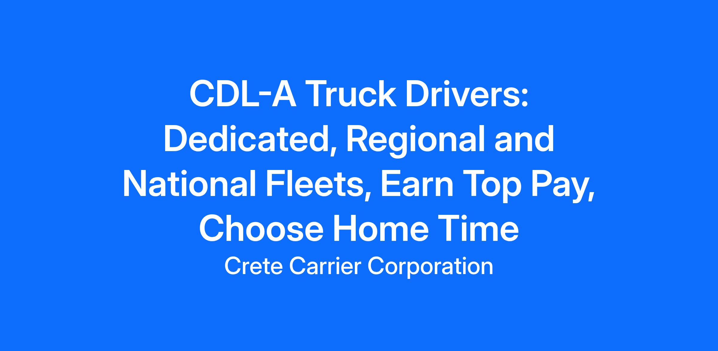 CDL-A Truck Drivers: Dedicated, Regional and National Fleets, Earn Top Pay, Choose Home Time