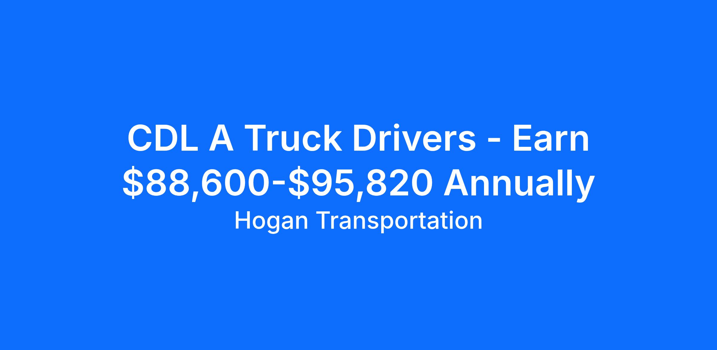 Hogan is family owned and operated with over 100 years of experience in the Transportation Industry. We continue a tradition of unparalleled, personalized service to clients and drivers. Hogan utilizes first-class equipment and advanced technology to help our drivers be successful. Drivers can expect a career embodied by safety, teamwork, professionalism, integrity, and the constant pursuit of excellence. Our nationwide network of dedicated opportunities allows drivers the opportunity to find predictable home time, competitive pay rates, and stable customer freight that best suits their needs. Our goal is to attract, recruit, and retain excellent employees that are passionately motivated to represent Hogan's core values. If this sounds like you, apply today to join the Hogan team!
