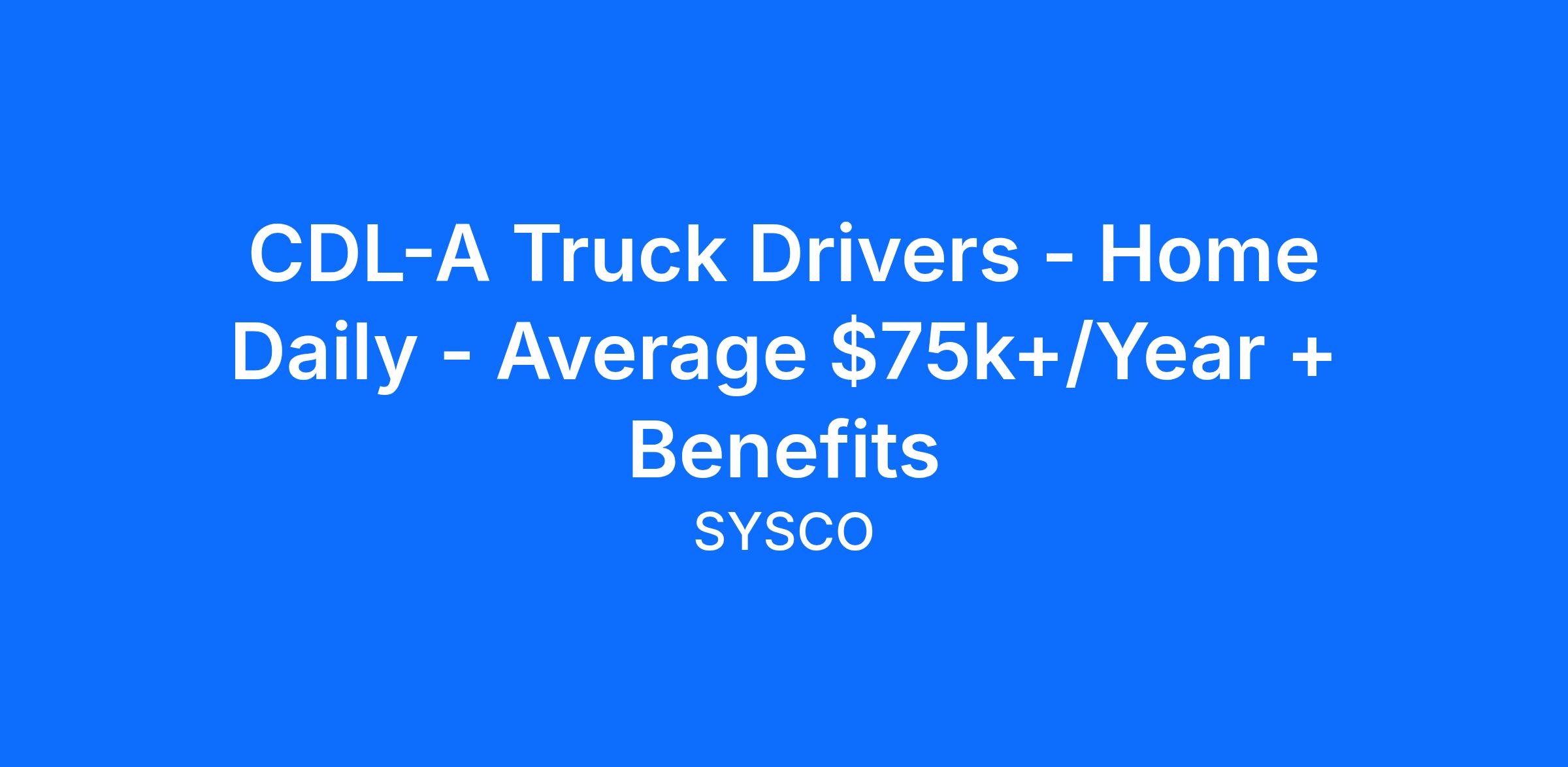 Sysco is Now Hiring Local CDL-A Delivery Drivers!