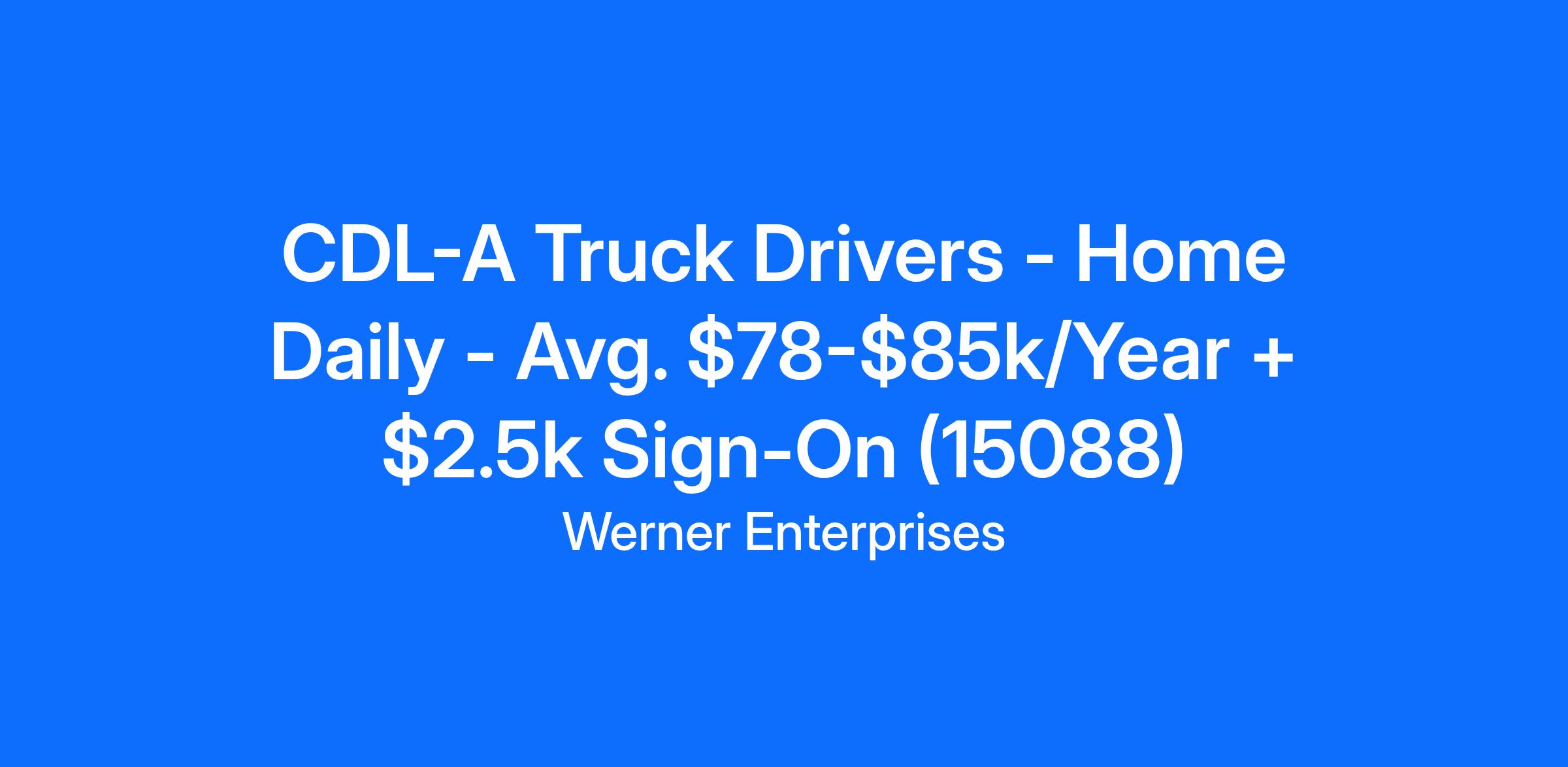 CDL-A Truck Drivers - Home Daily - Avg. $78-$85k/Year + $2.5k Sign-On (15088)