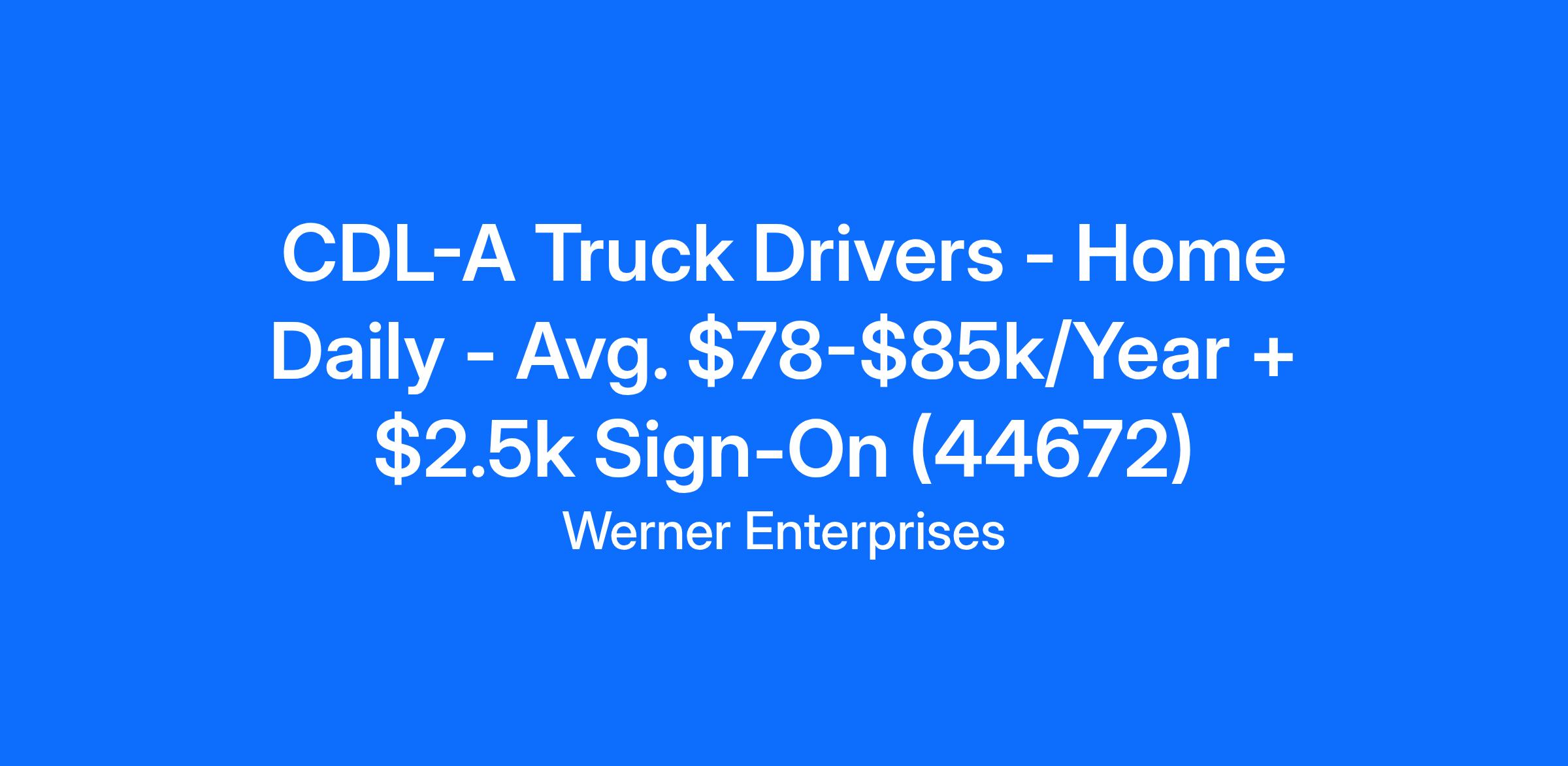 CDL-A Truck Drivers - Home Daily - Avg. $78-$85k/Year + $2.5k Sign-On (44672)