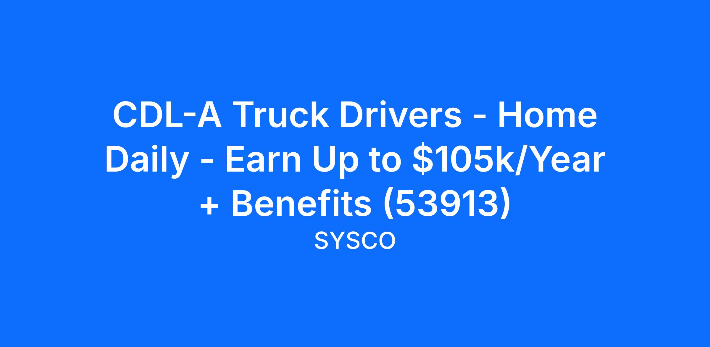CDL-A Truck Drivers - Home Daily - Earn Up to $105k/Year + Benefits (53913)