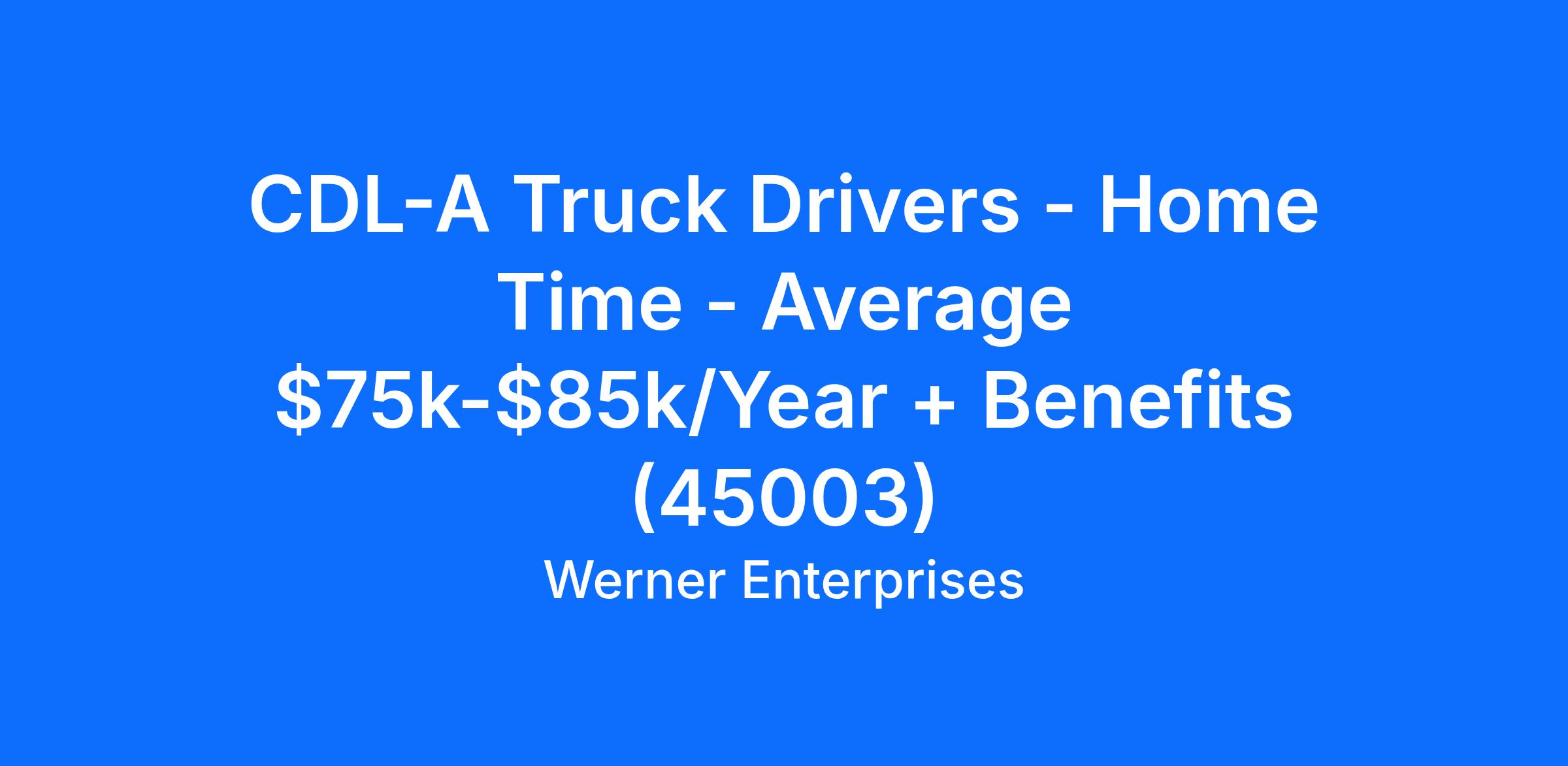 CDL-A Truck Drivers - Home Time - Average $75k-$85k/Year + Benefits (45003)