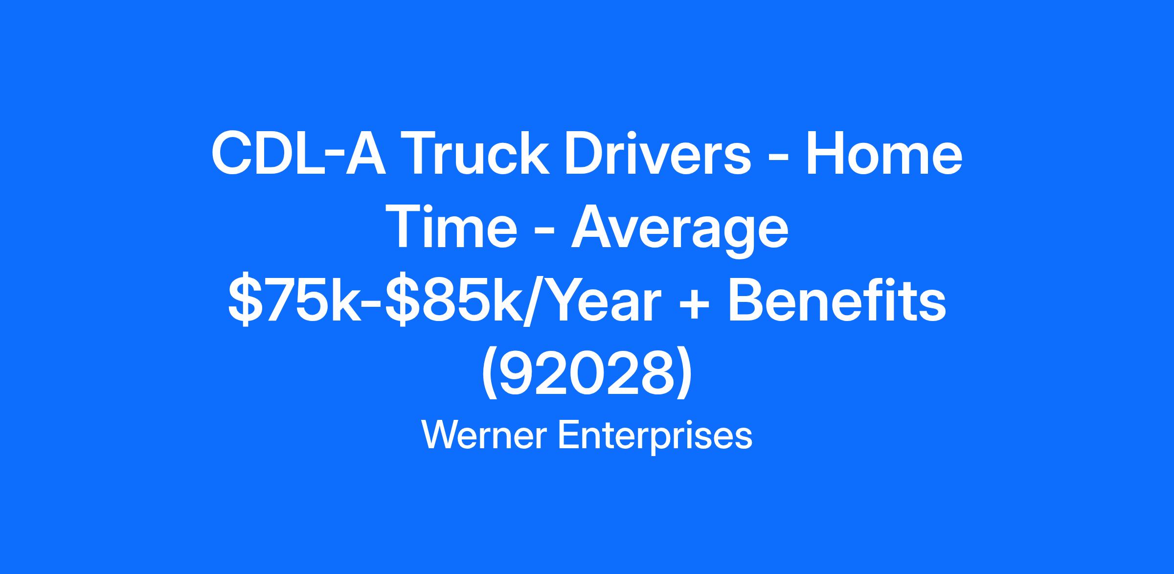 CDL-A Truck Drivers - Home Time - Average $75k-$85k/Year + Benefits (92028)