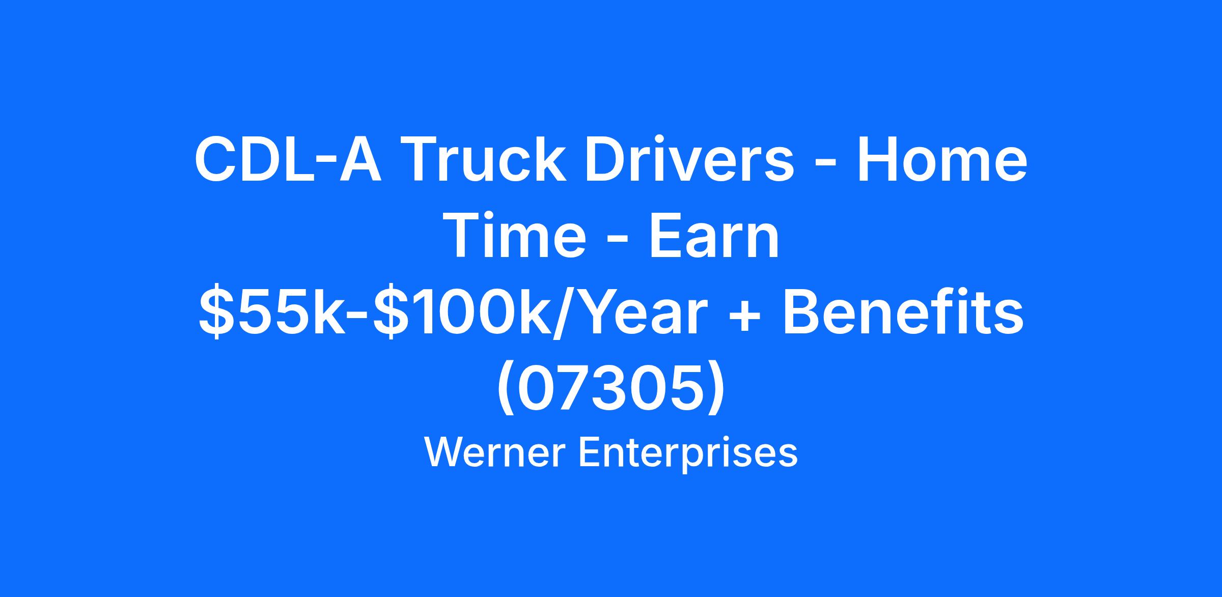 CDL-A Truck Drivers - Home Time - Earn $55k-$100k/Year + Benefits (07305)