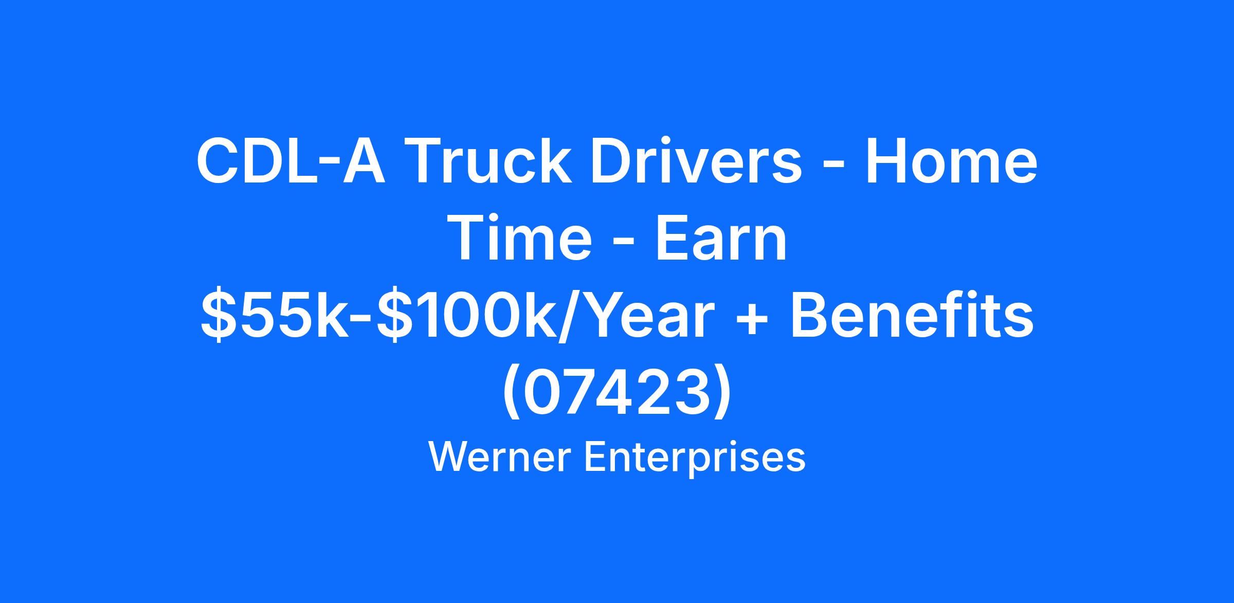 CDL-A Truck Drivers - Home Time - Earn $55k-$100k/Year + Benefits (07423)