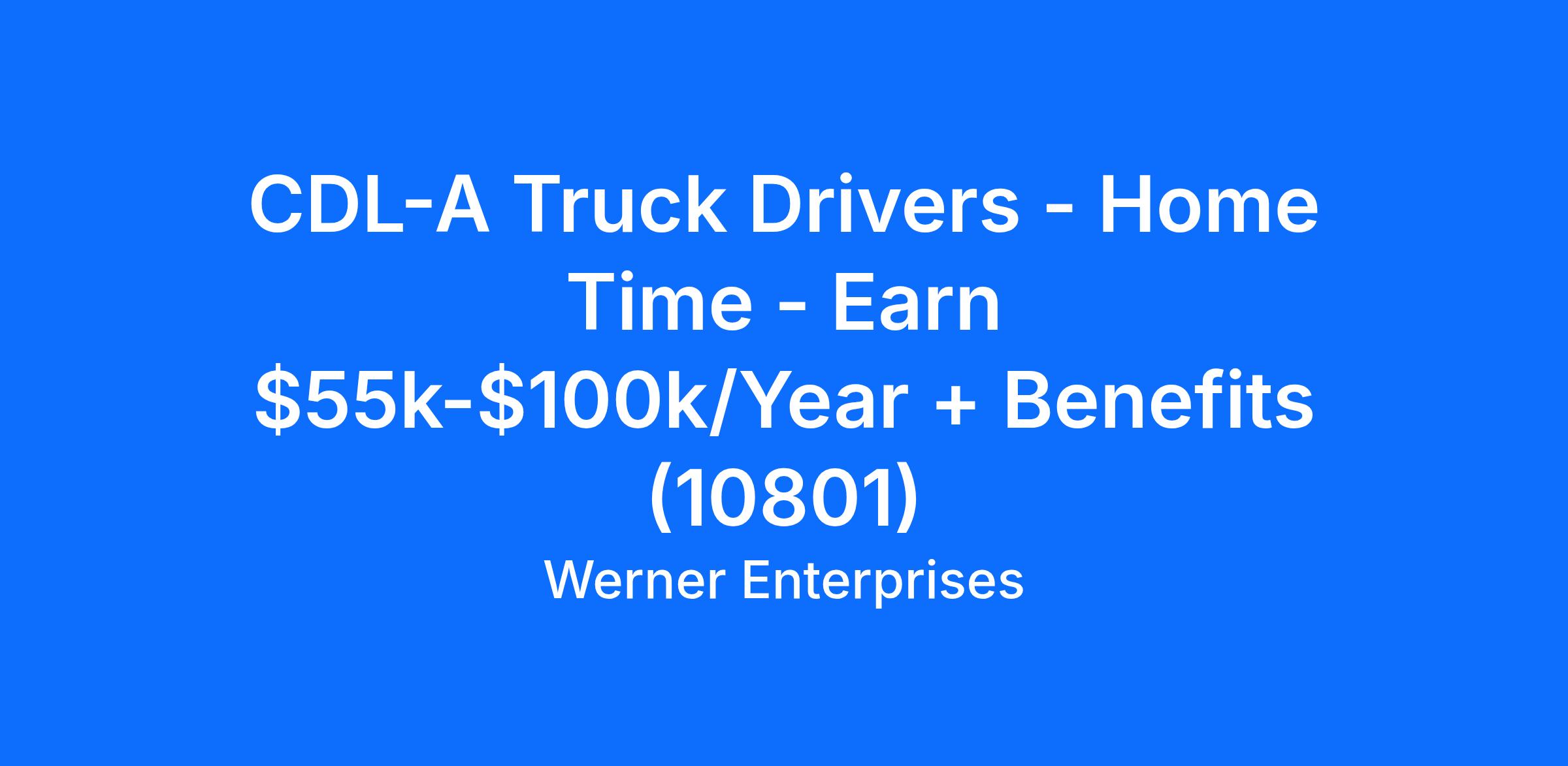 CDL-A Truck Drivers - Home Time - Earn $55k-$100k/Year + Benefits (10801)