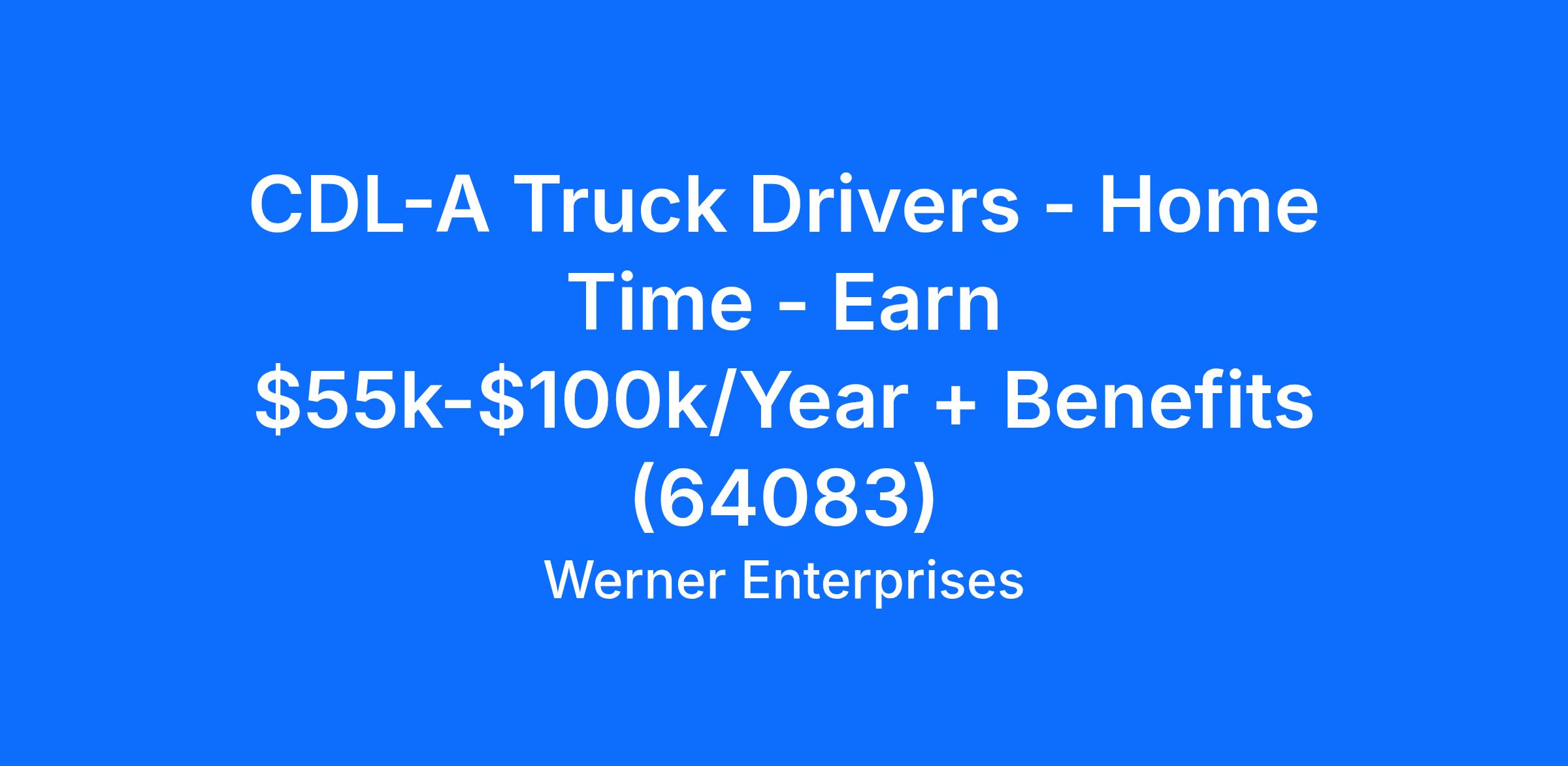 CDL-A Truck Drivers - Home Time - Earn $55k-$100k/Year + Benefits (64083)