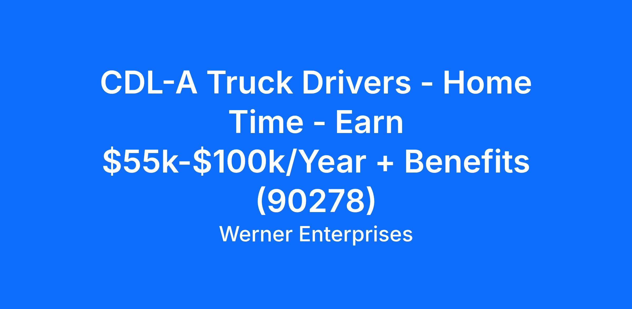CDL-A Truck Drivers - Home Time - Earn $55k-$100k/Year + Benefits (90278)