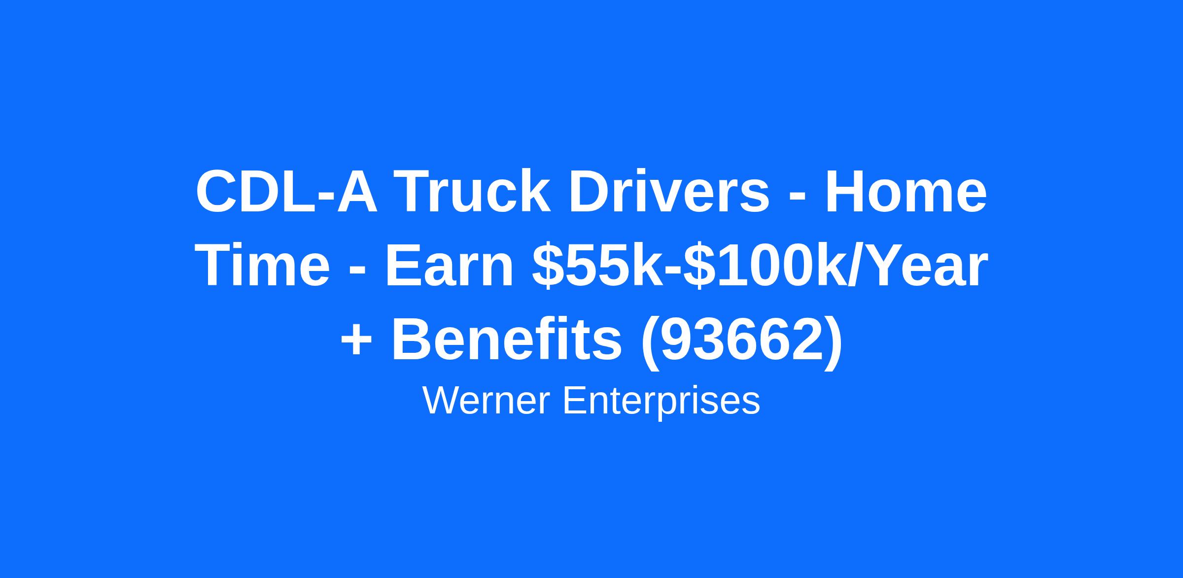 CDL-A Truck Drivers - Home Time - Earn $55k-$100k/Year + Benefits (93662)