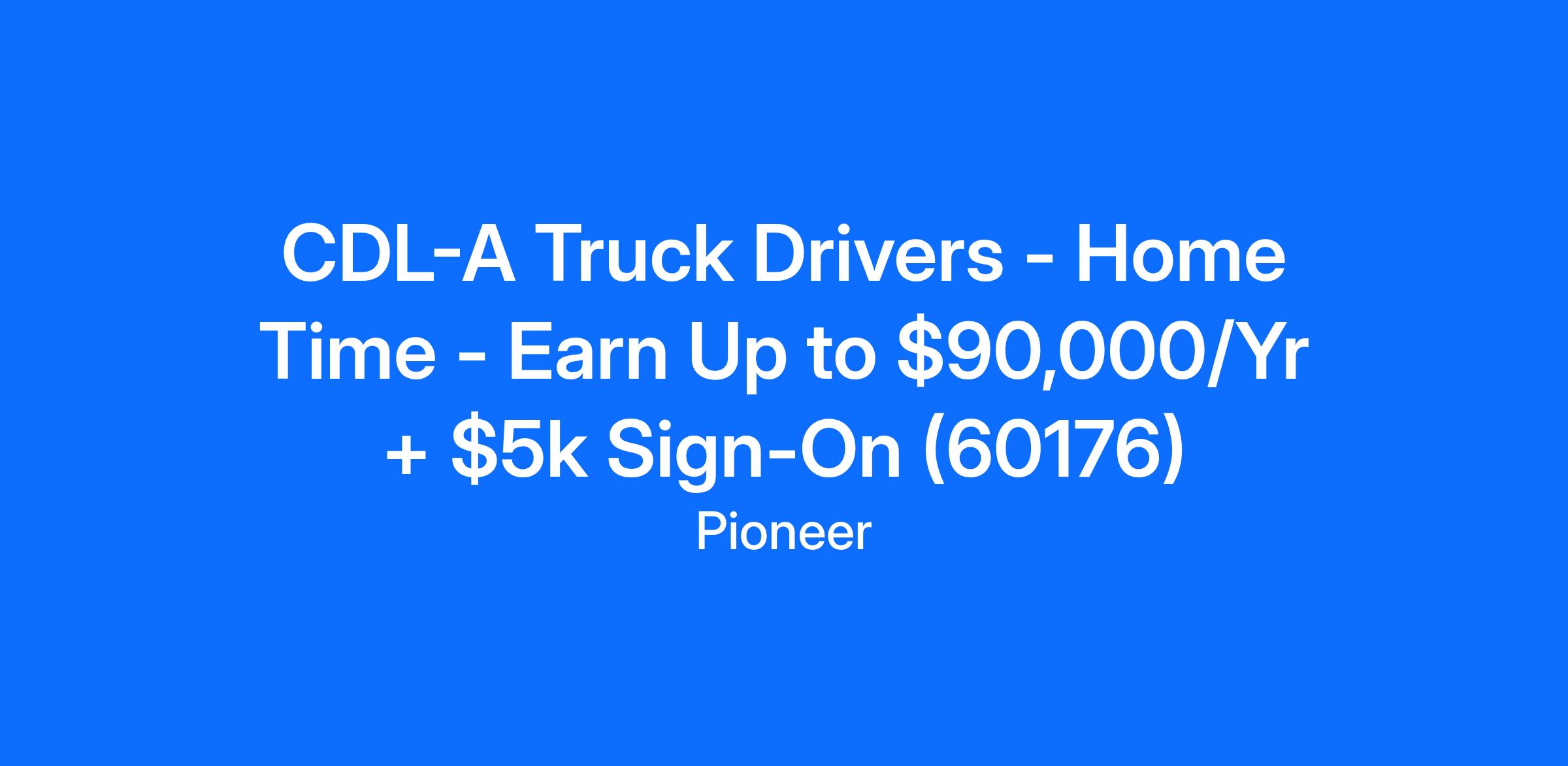 CDL-A Truck Drivers - Home Time - Earn Up to $90,000/Yr + $5k Sign-On (60176)