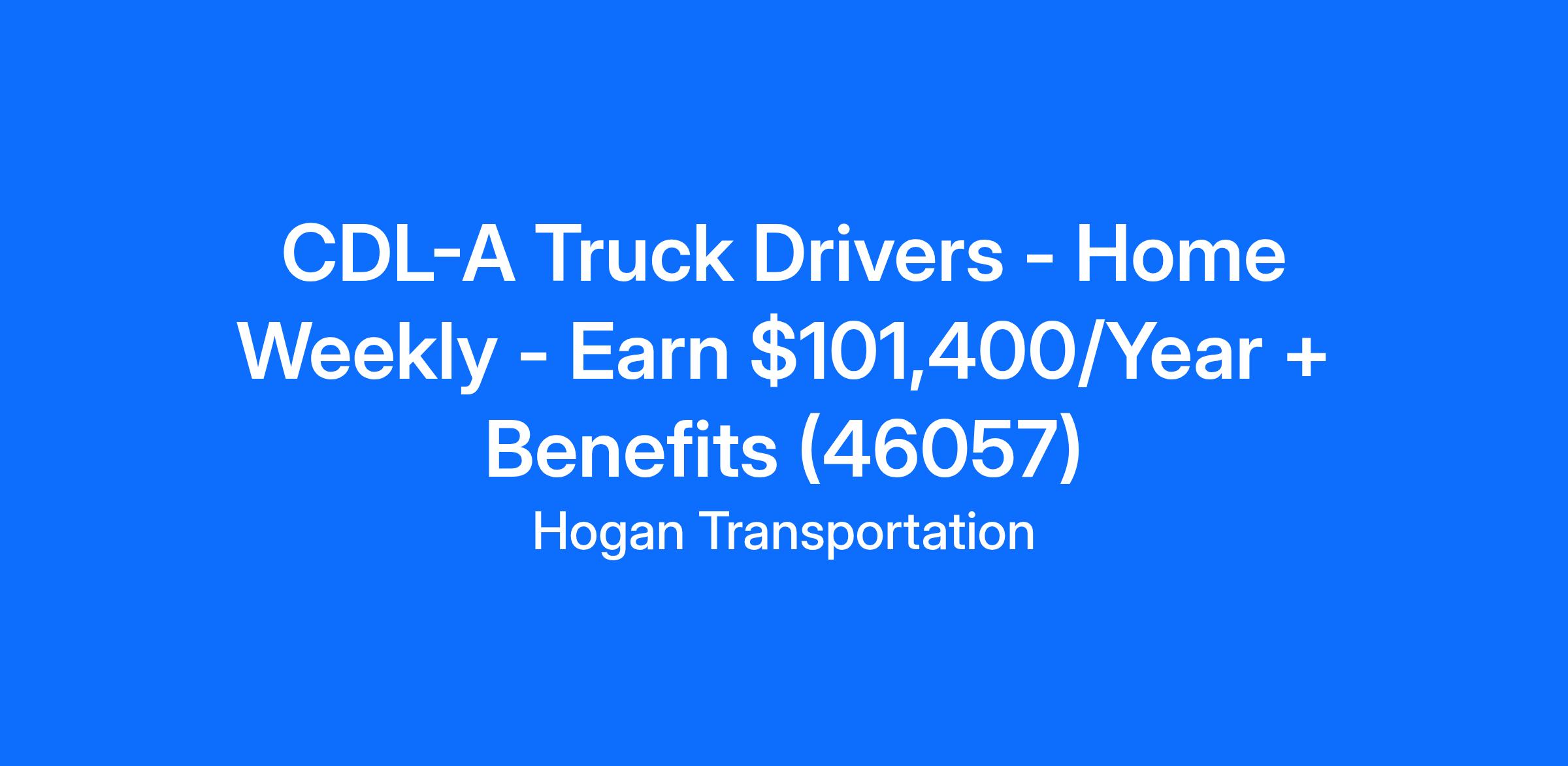CDL-A Truck Drivers - Home Weekly - Earn $101,400/Year + Benefits (46057)