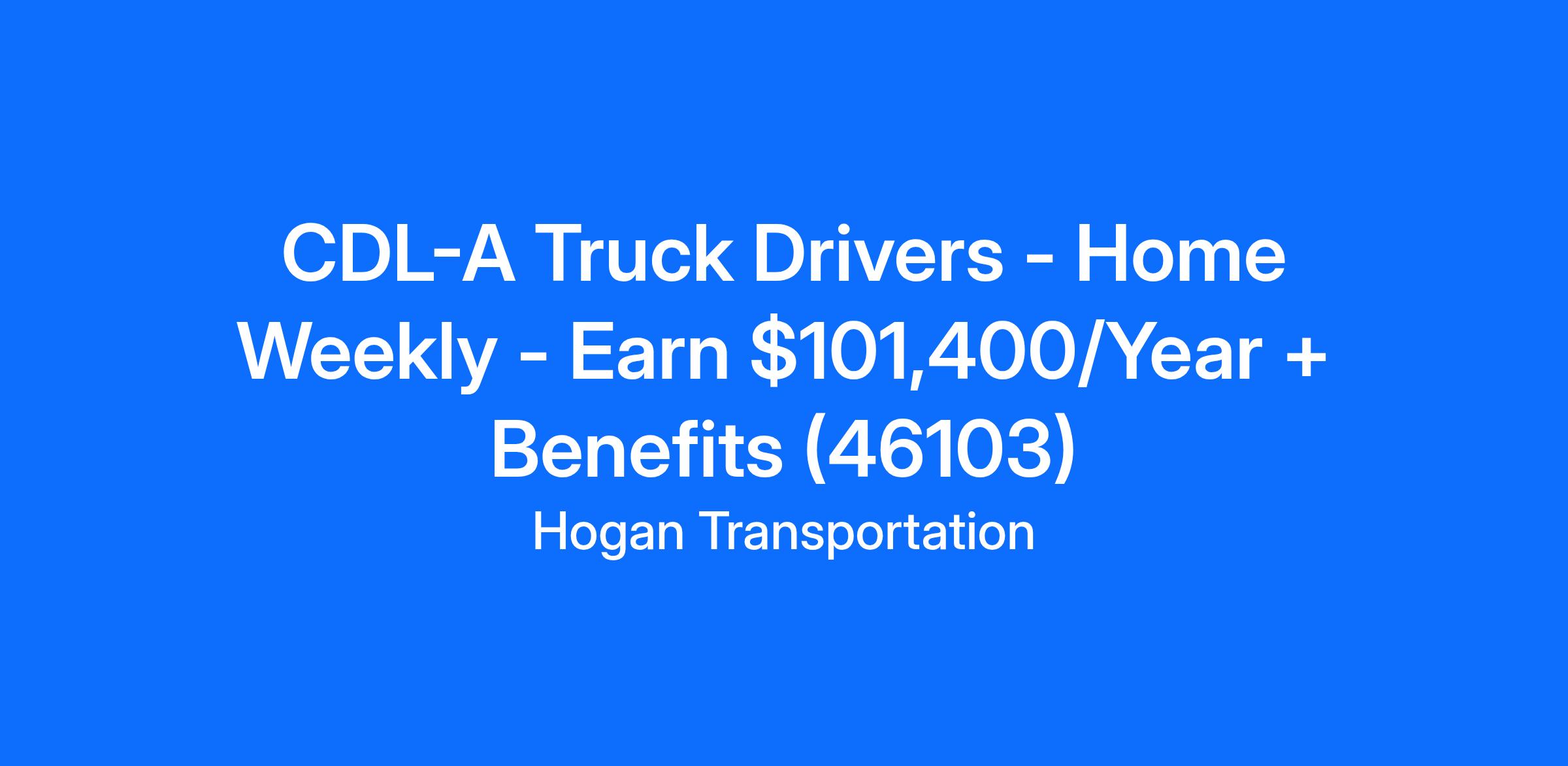 CDL-A Truck Drivers - Home Weekly - Earn $101,400/Year + Benefits (46103)
