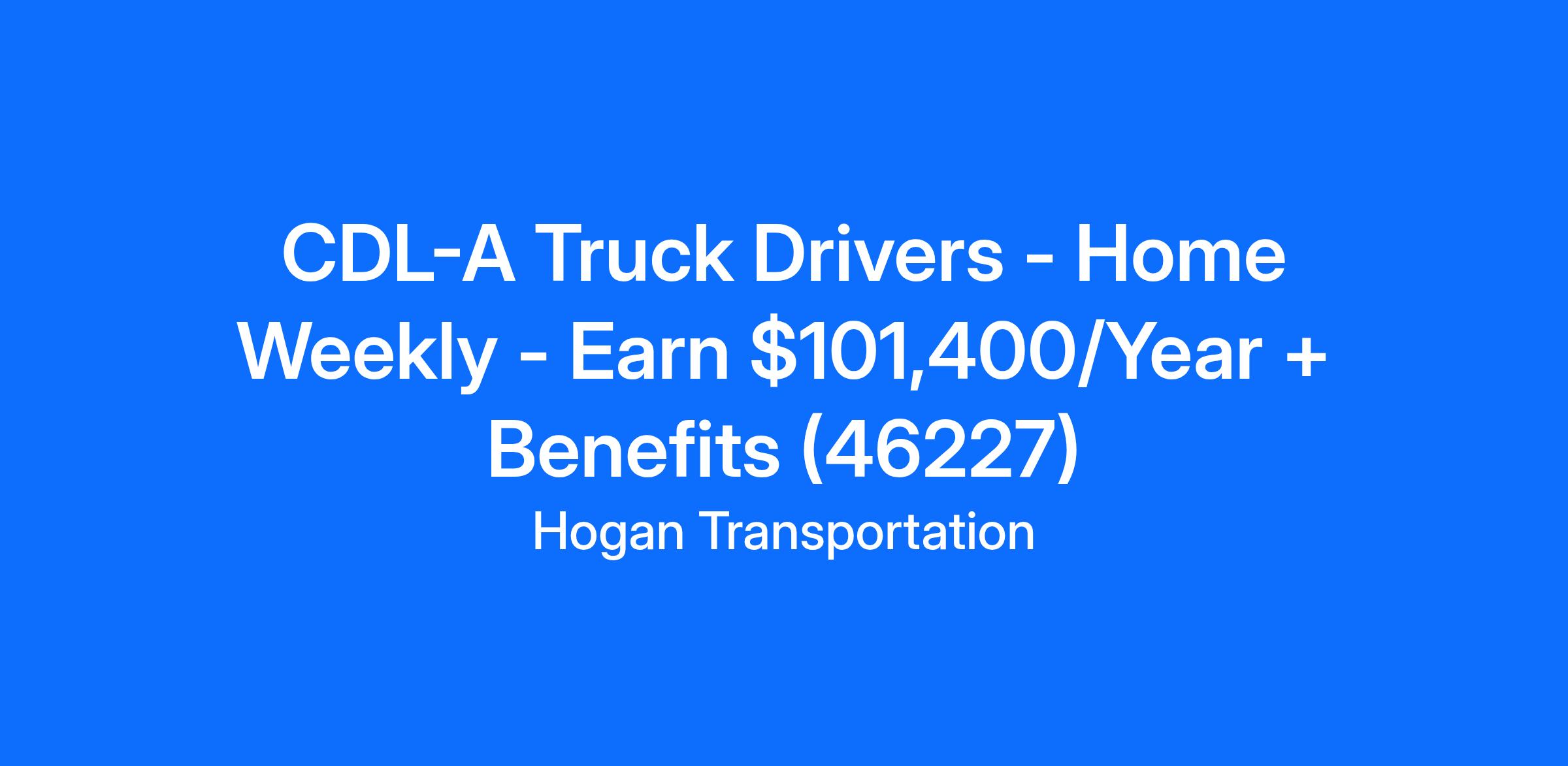 CDL-A Truck Drivers - Home Weekly - Earn $101,400/Year + Benefits (46227)