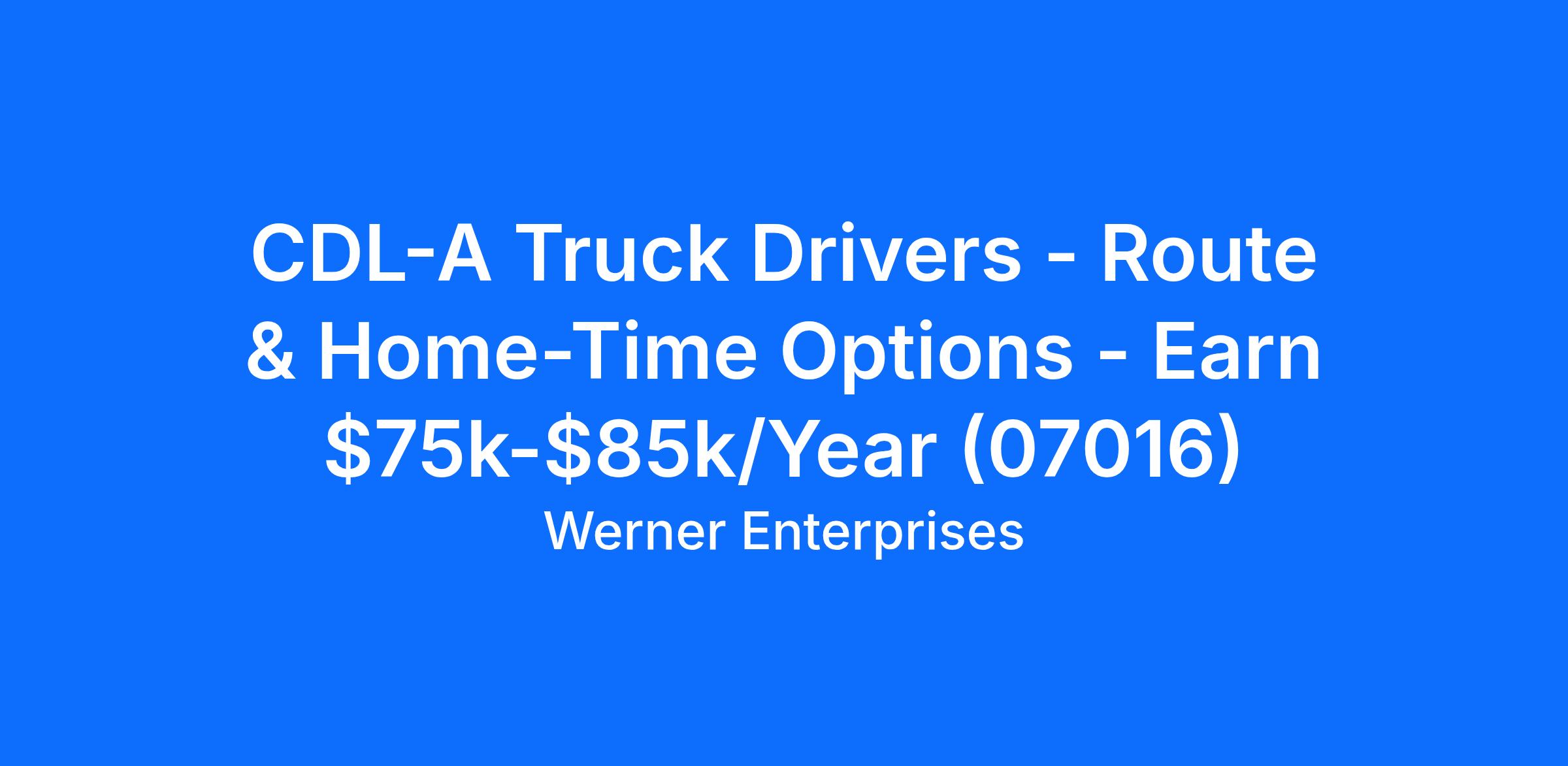 CDL-A Truck Drivers - Route & Home-Time Options - Earn $75k-$85k/Year (07016)
