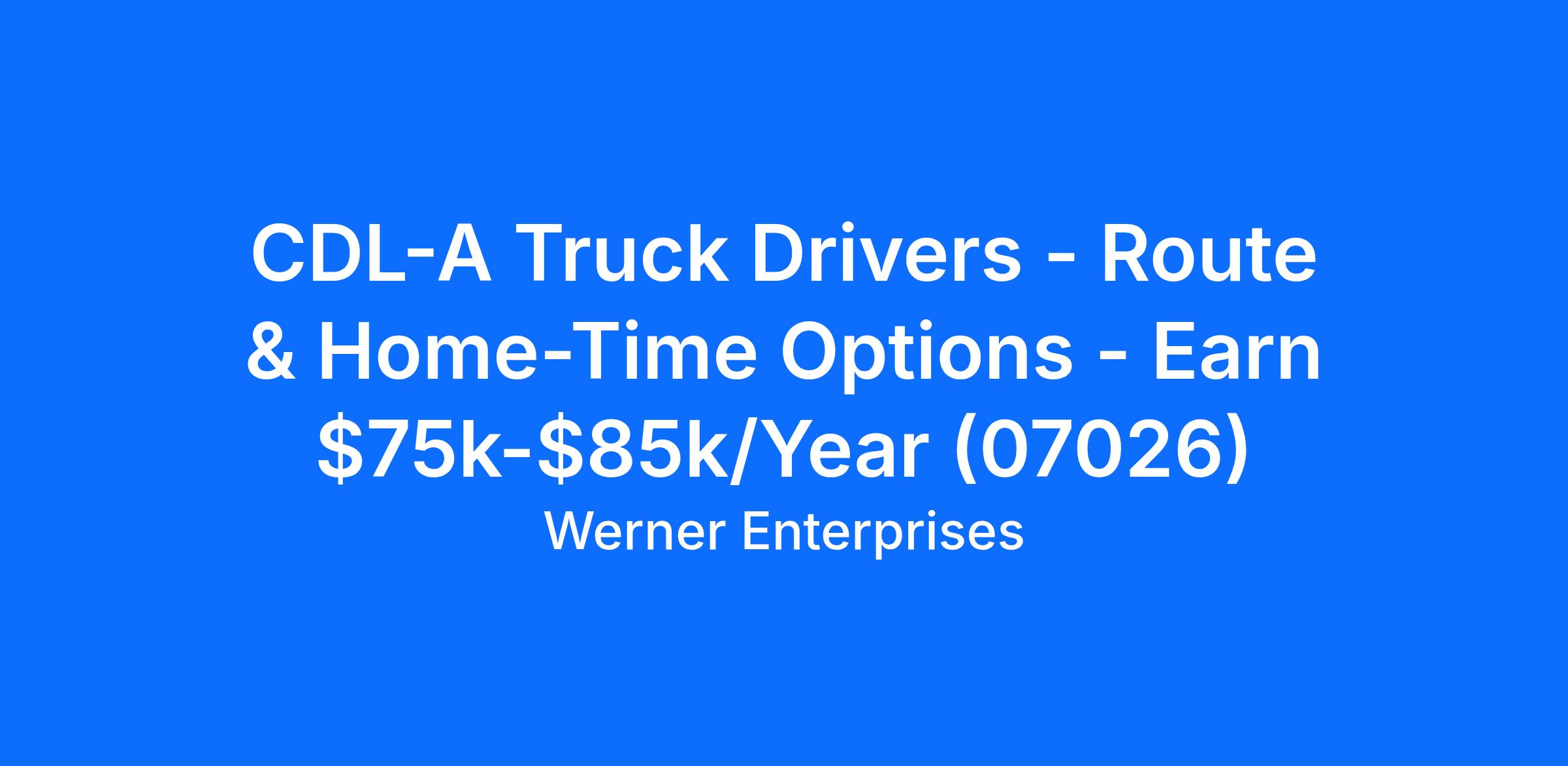 CDL-A Truck Drivers - Route & Home-Time Options - Earn $75k-$85k/Year (07026)